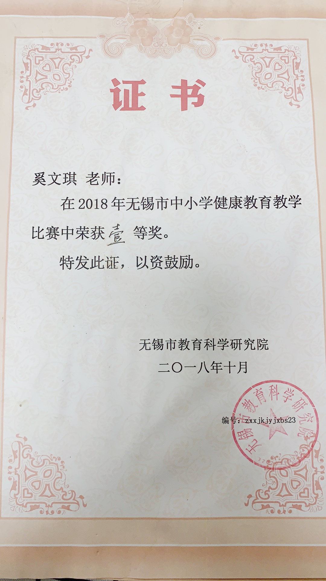 张彪 郁蕊老师荣获2019年度江阴市中小学优秀德育论文一等奖