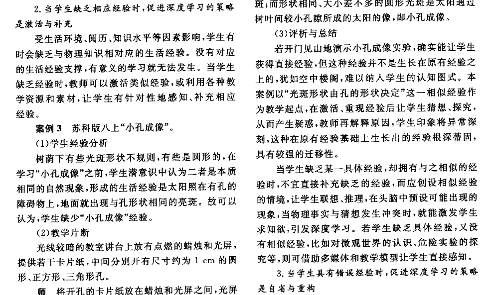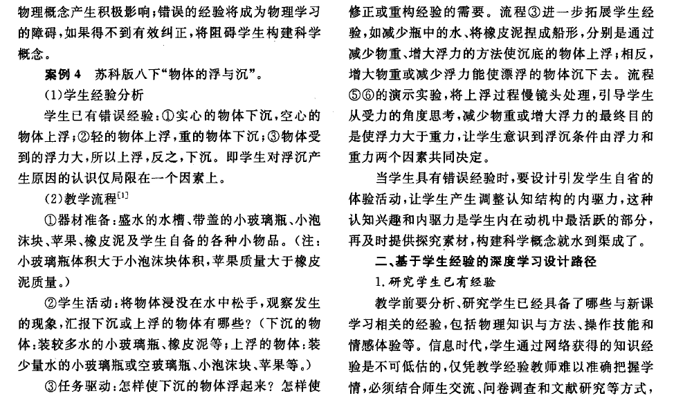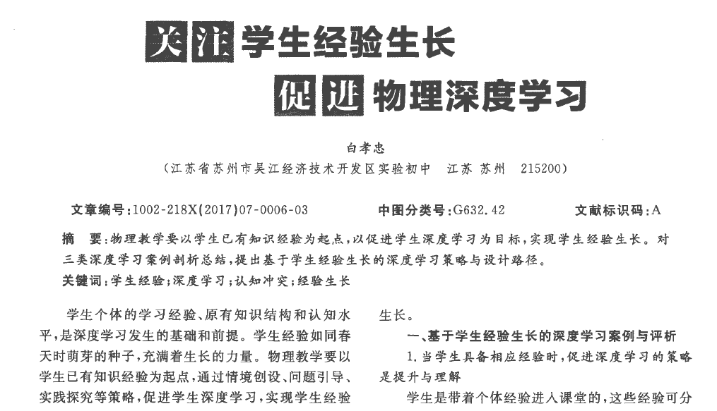 关注学生经验生长 促进物理深度学习