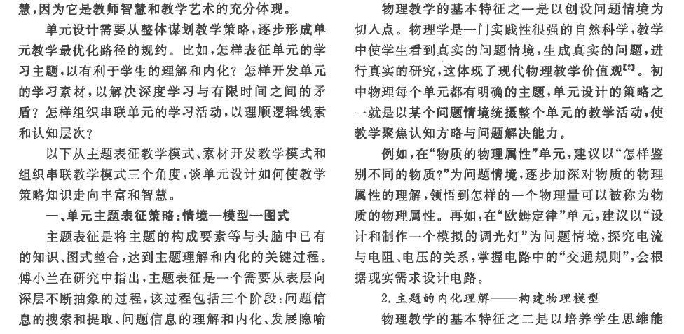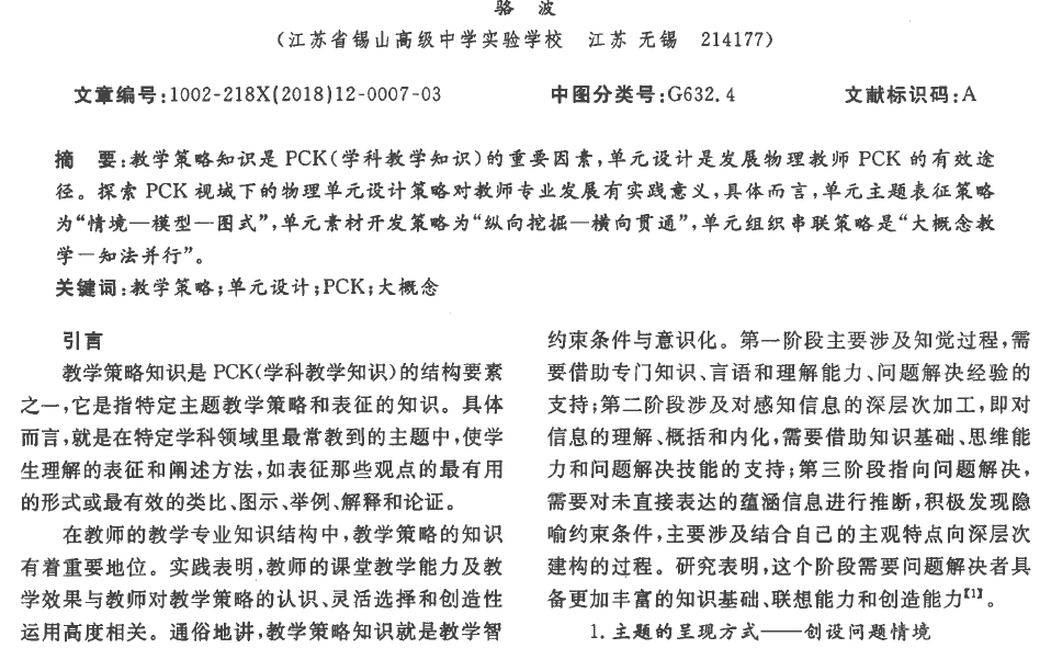 推荐理由:从单元设计的视角表征研究主题,有利于教师学科教学知识的丰富,形成灵活有效的教学策略,有效提升物理教师PCK。