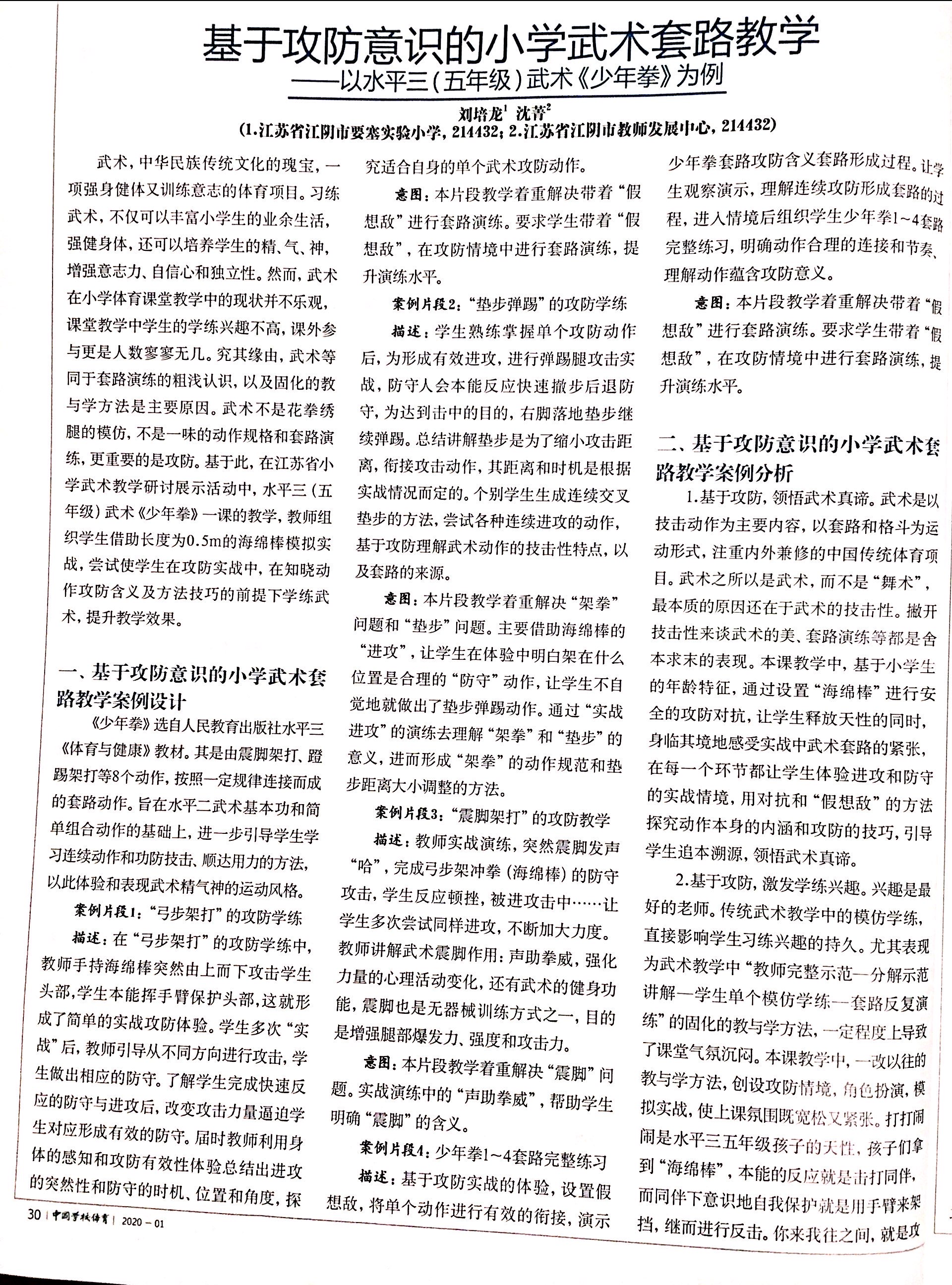 基于攻防意识的小学武术套路教学
