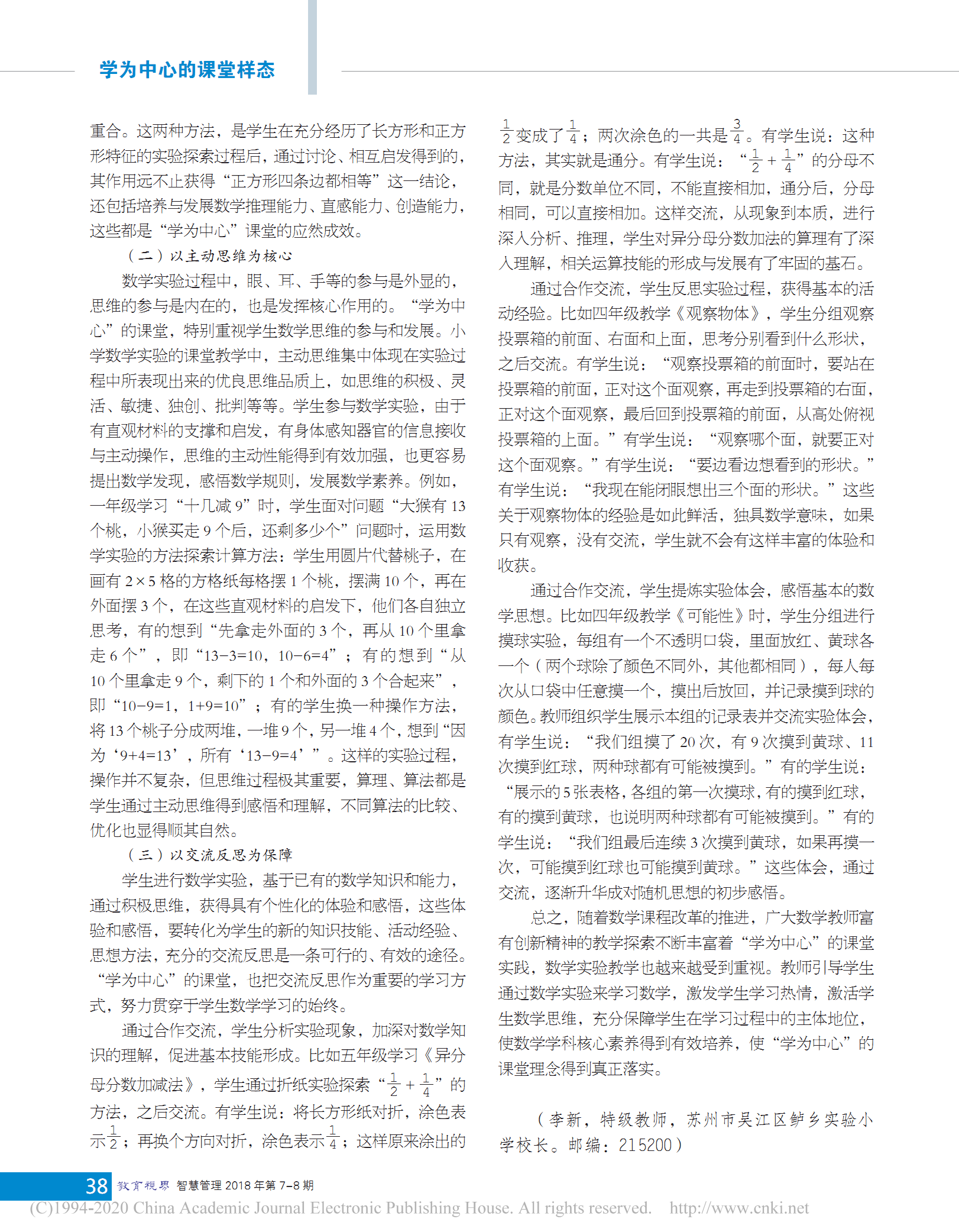 好文推荐《引导学生深度参与数学实验过程——小学数学“学为中心”的课堂实践路径初探》