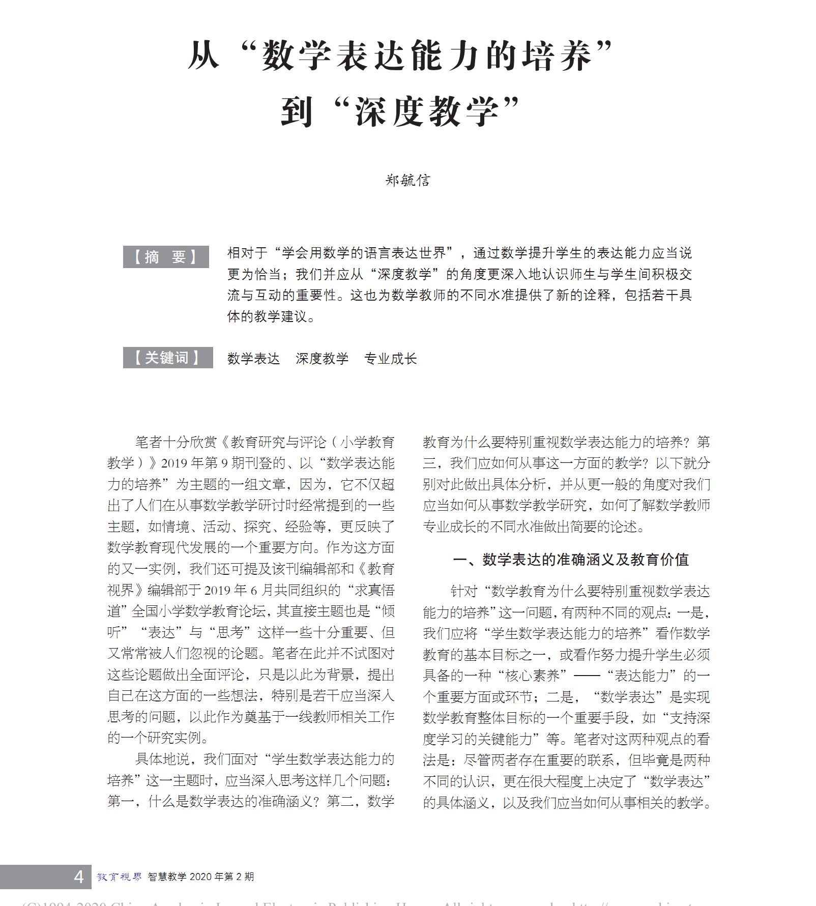 好文推荐《从“数学表达能力的培养”到“深度教学”》