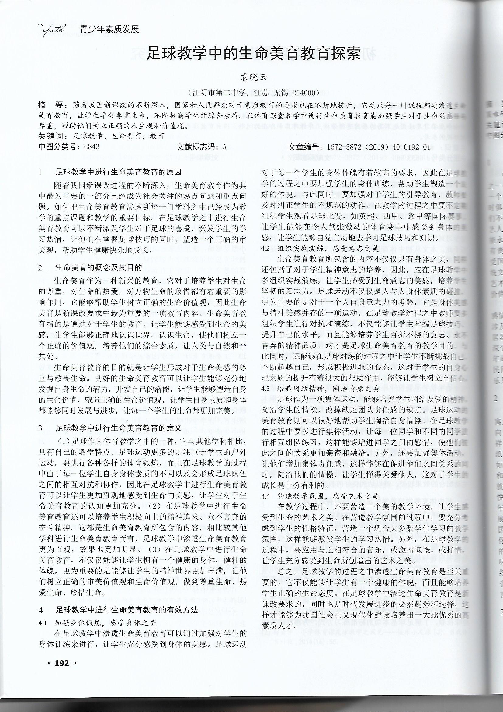 《足球教学中的生命美育教育探索》
