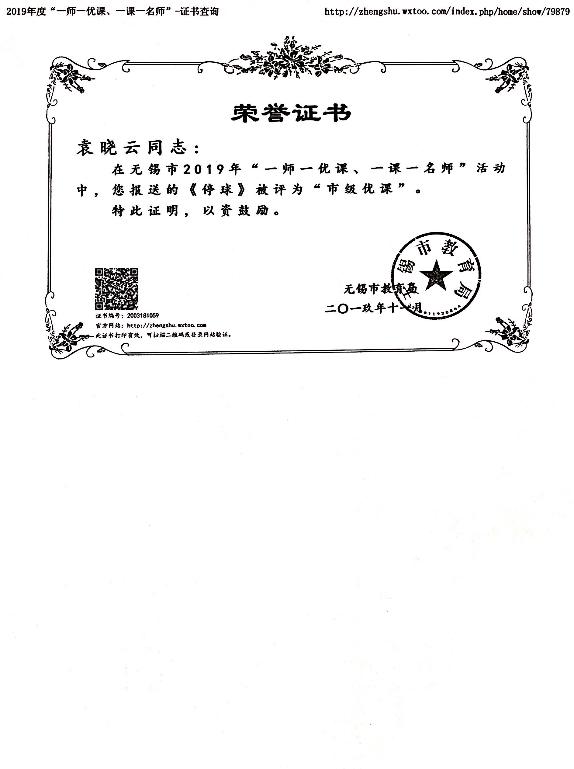 袁晓云老师《停球》课被评为2019年度“一师一优课、一课一名师”活动“市级优课”