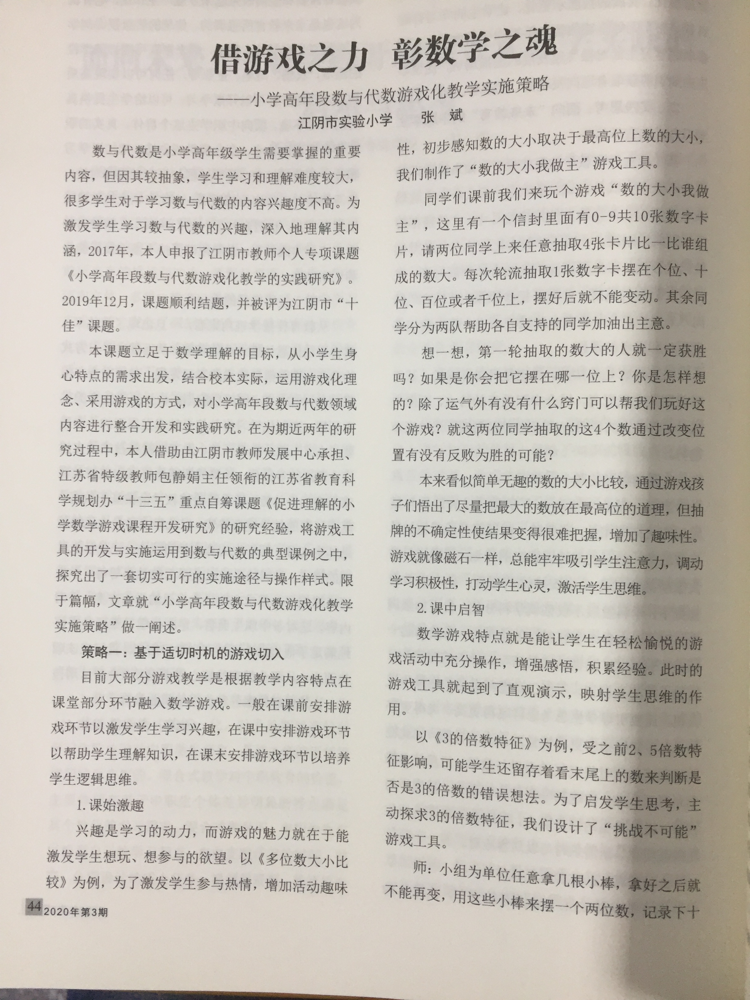 好文推荐《借游戏之力,彰数学之魂》(张斌)