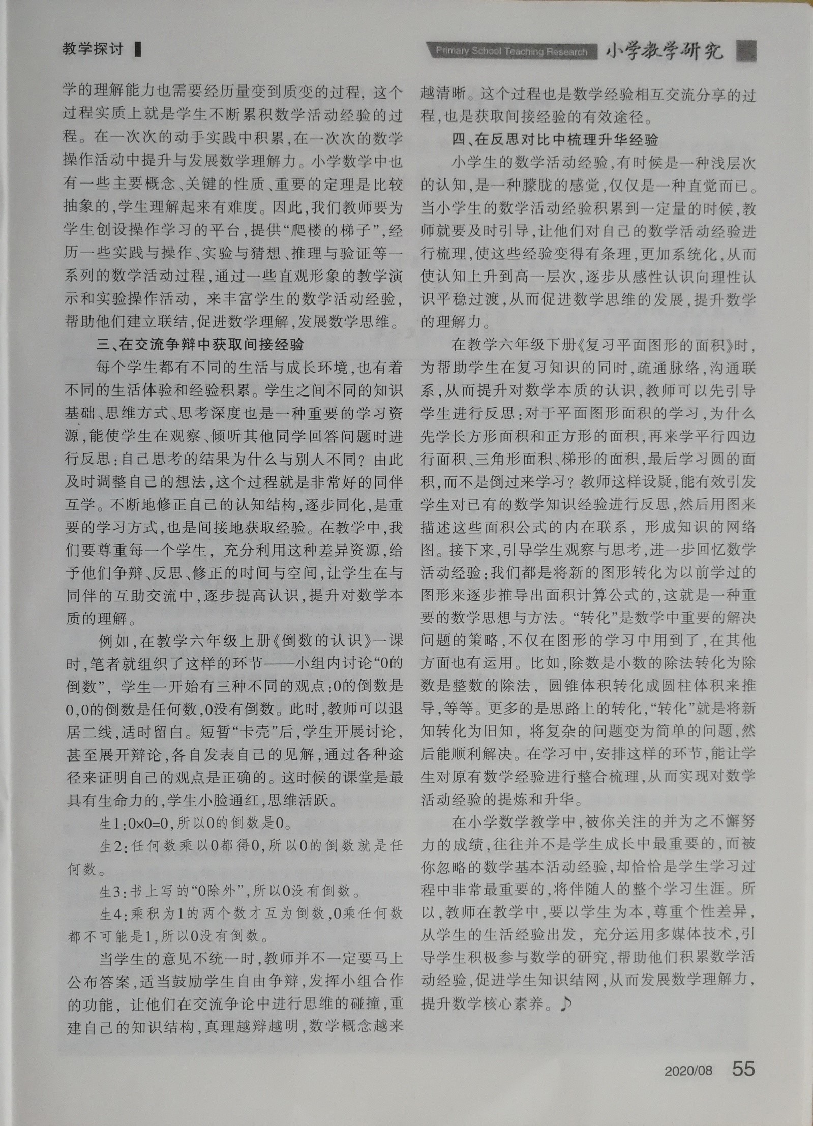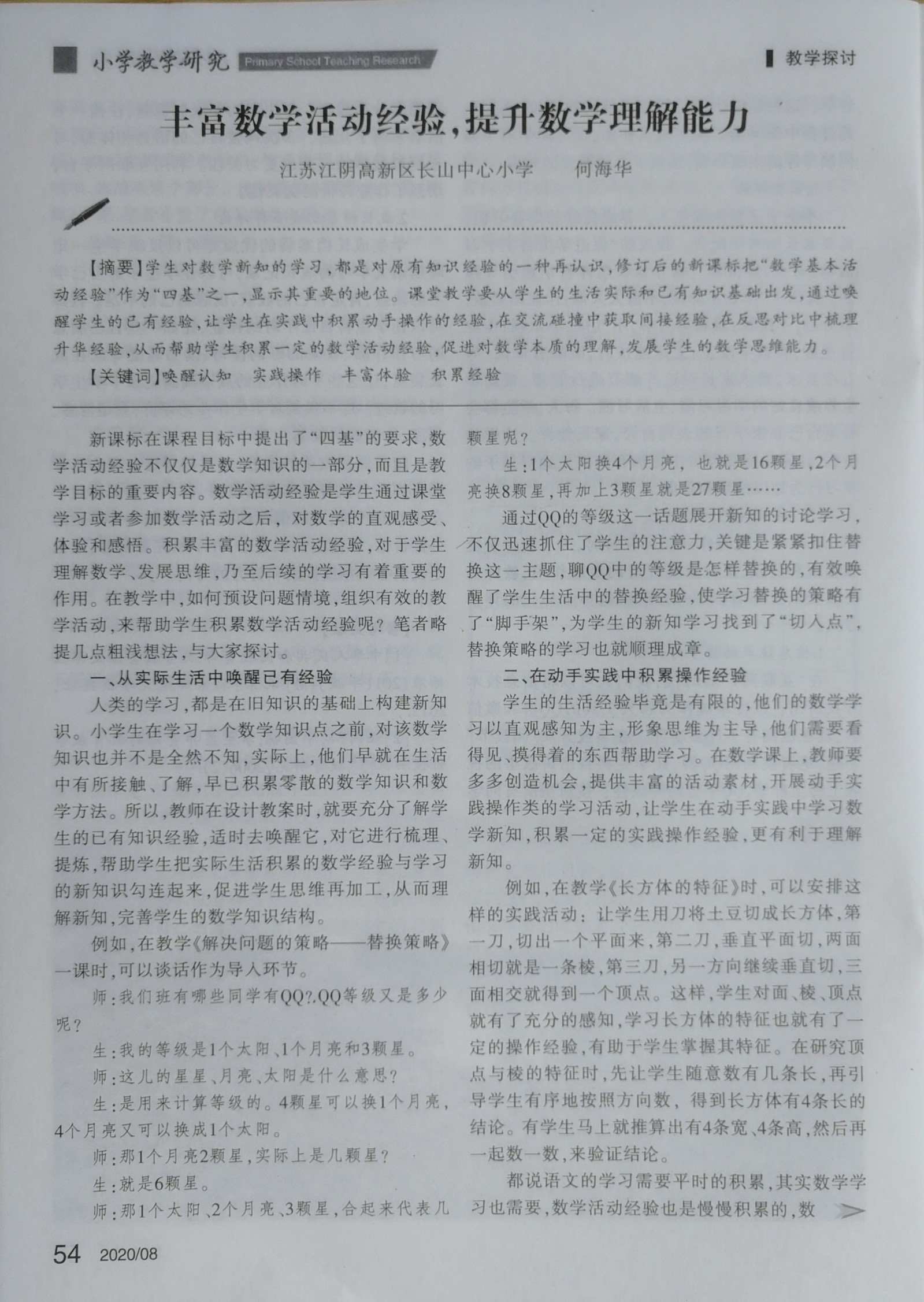 好文推荐《丰富数学活动经验,提升数学理解能力》(何海华)