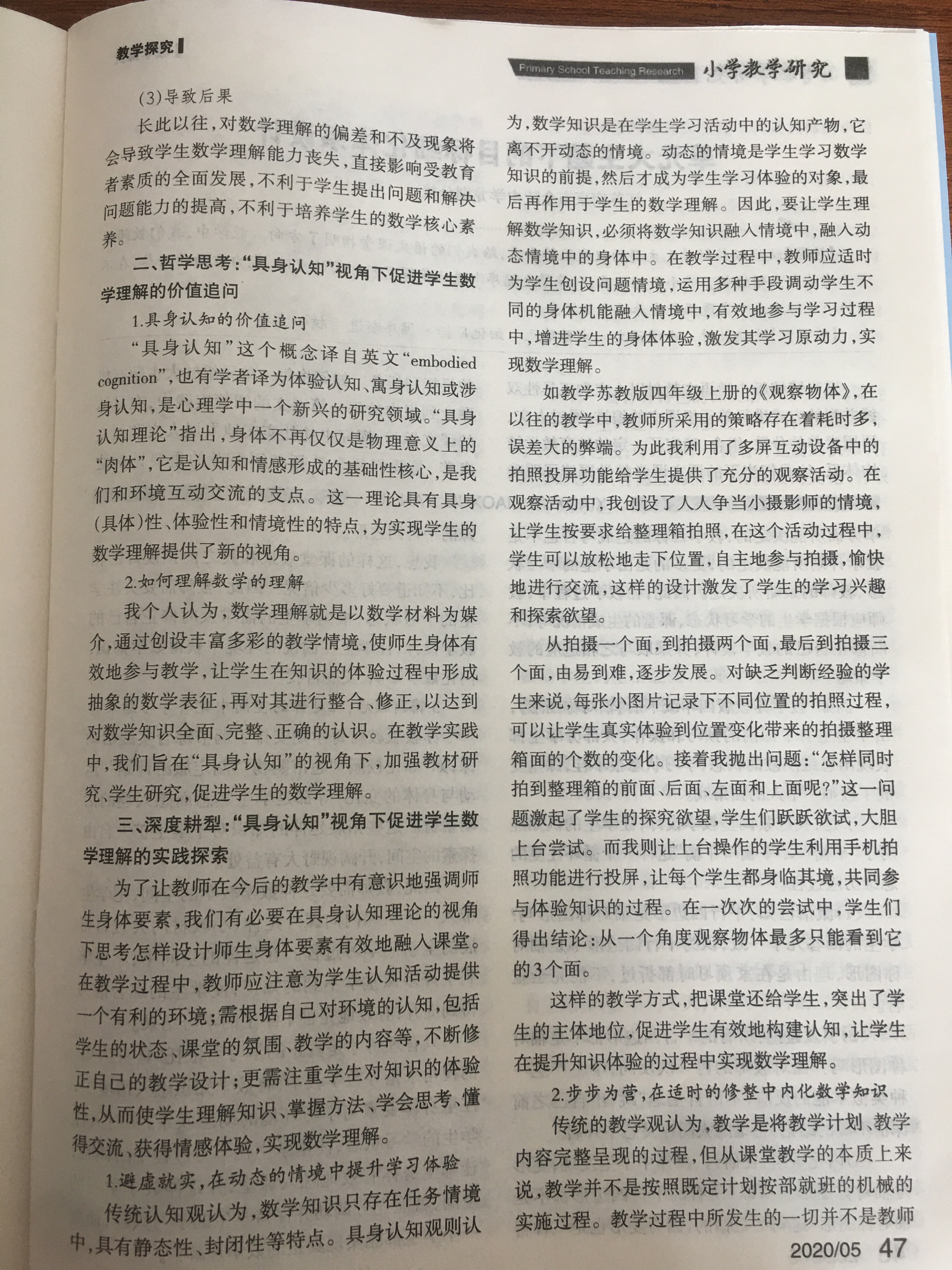 好文推荐《扬“具身认知”之帆,启“数学理解”之航》(李丽)