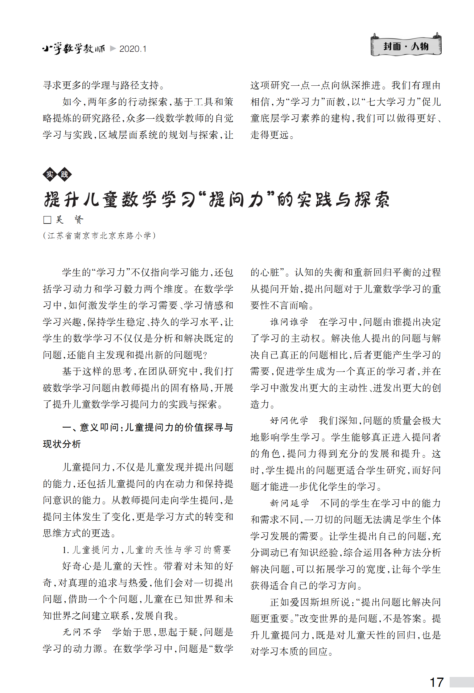 推荐理由:著名教育家陶行知先生说过:“发明千千万,起点是一问,所谓智者问得巧,愚者问得笨,如何巧妙设计数学课堂问题是课堂教学需要研究的重要内容,可以说,提出有价值的问题,比如何解决问题更为重要。有效的课堂提问能促进学生思维碰撞,灵感迸发,实验经验分享,方法交流,是课堂的灵魂所在。本文中,结合具体的课堂实践,全面地进行了阐述。