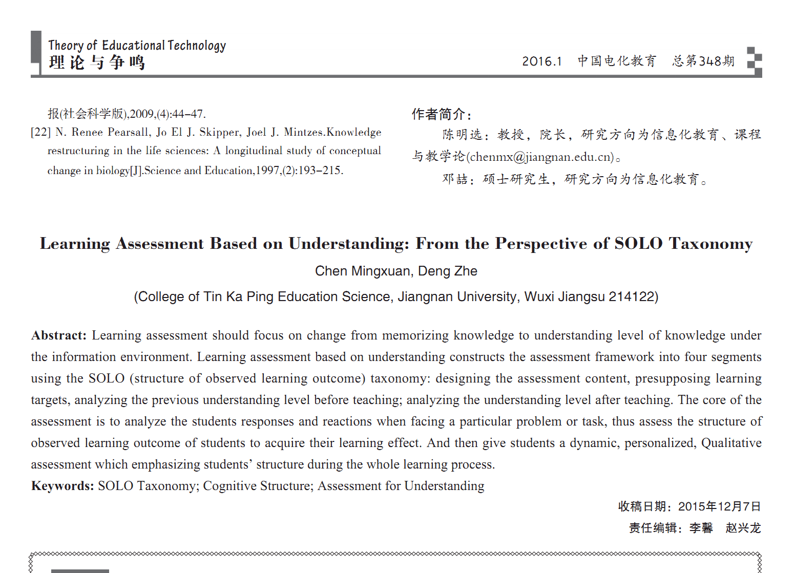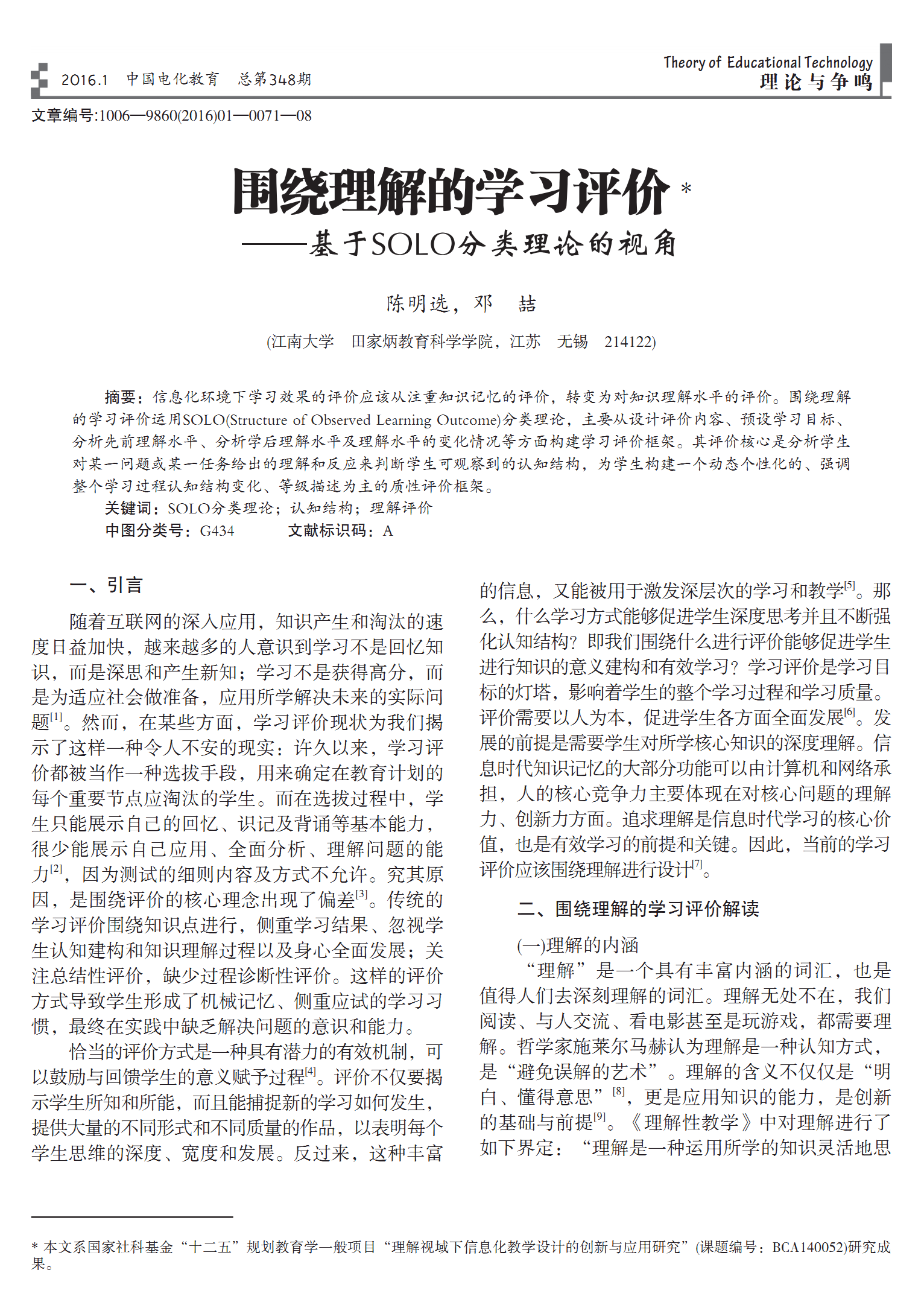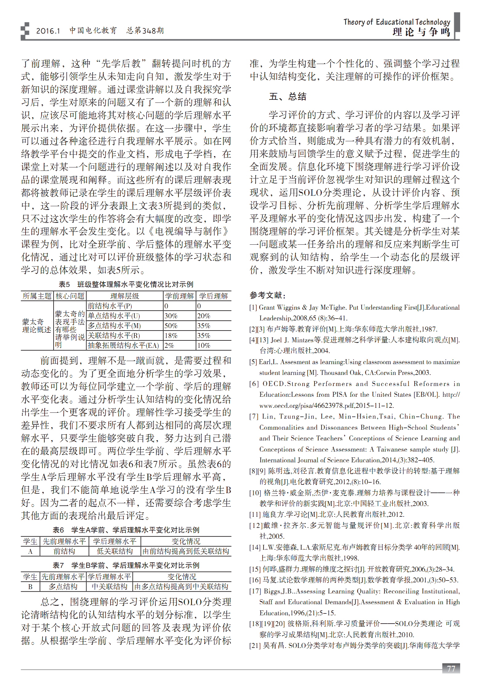 好文推荐《围绕理解的学习评价——基于SOLO分类理论的视角》