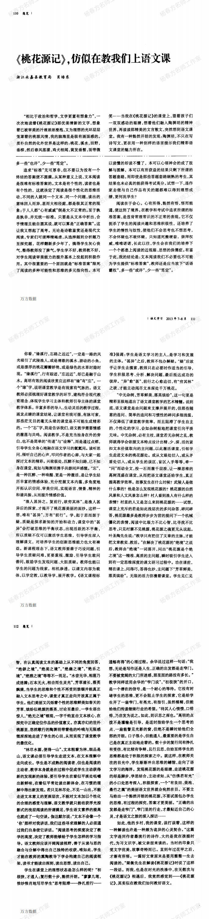 【推荐理由】肖培东老师的这篇文章巧妙设喻讲课堂艺术。