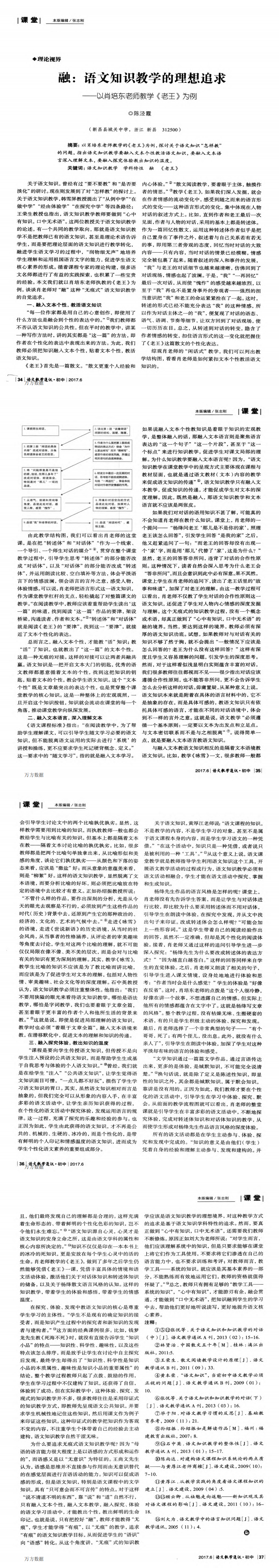 融语文知识教学的理想追求——以肖培东老师教学《老王》为例