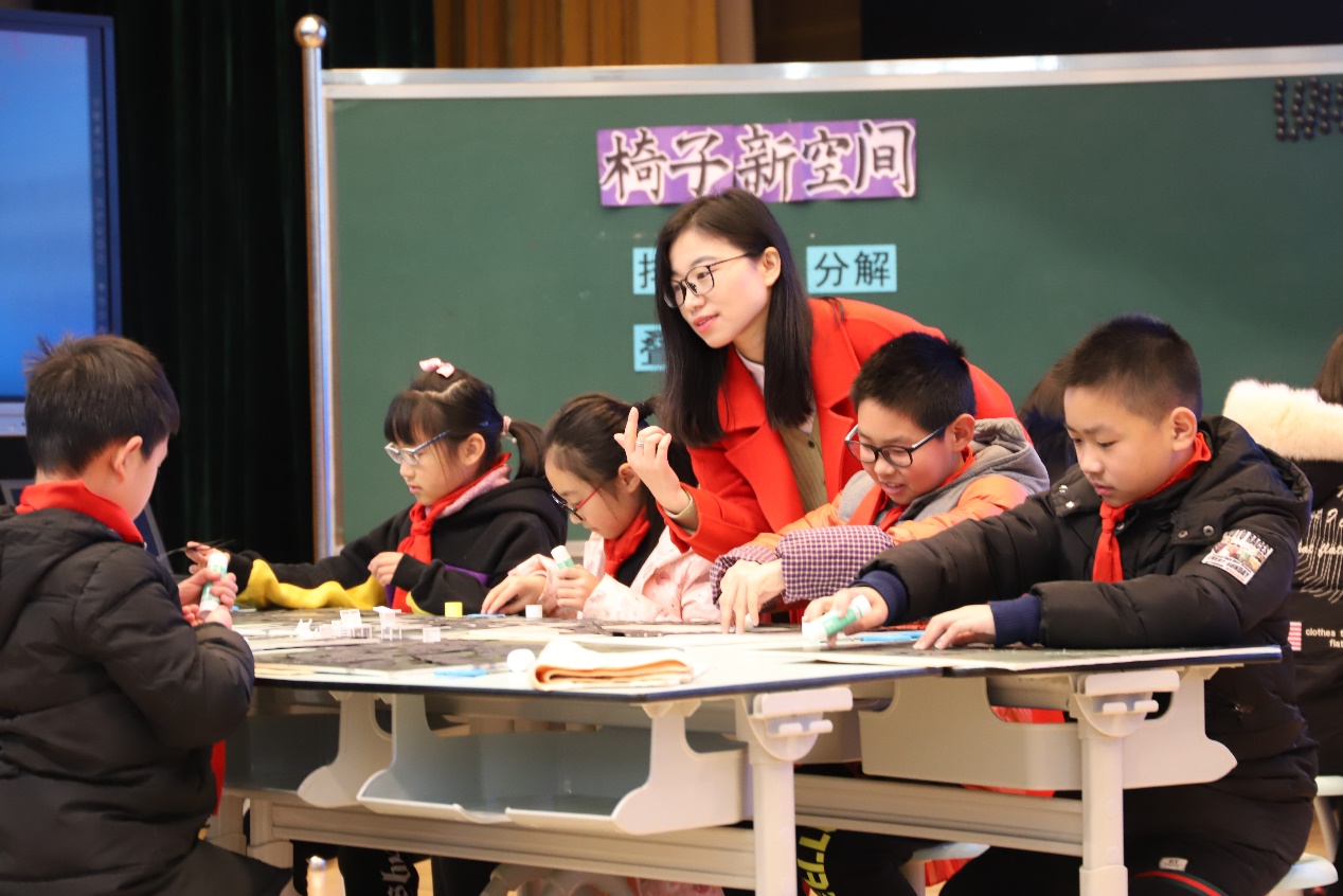 魏智子老师《山的诉说》,作为新生代的她,独具创意,让学生充分感知各种制作材料,白沙、棉花、树叶、透明胶片、塑料纸……,并用一种特殊的制作方法——蓝晒,通过拼贴、灯箱照射、浸水、晾干让同学们感受了现代艺术创意的神奇。在制作过程中,当同学们意想不到的效果跃然纸上时,同学们喜形于色。如此好课,顿然引来专家、老师们强烈兴趣。