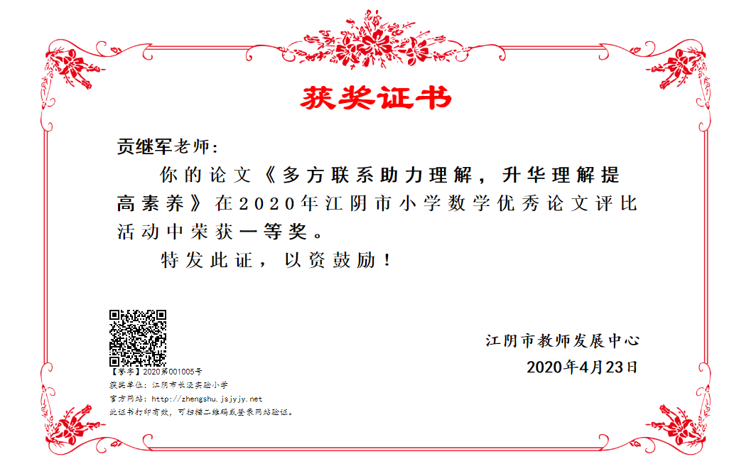 《多方联系助力理解,升华理解提高素养》论文评比一等奖