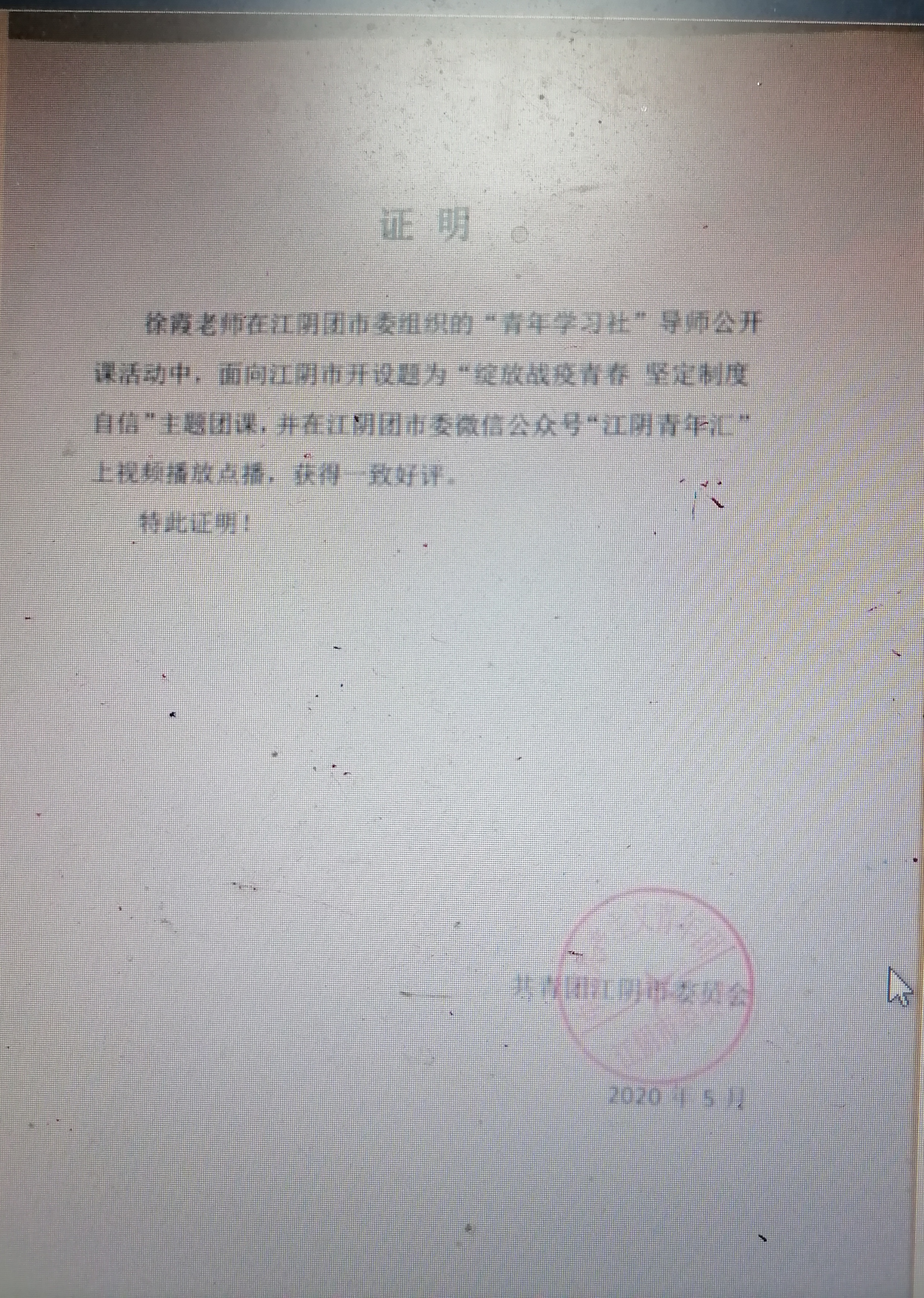“绽放战疫青春,坚持制度自信”主题团课(徐霞)(共青团江阴市委员会)
