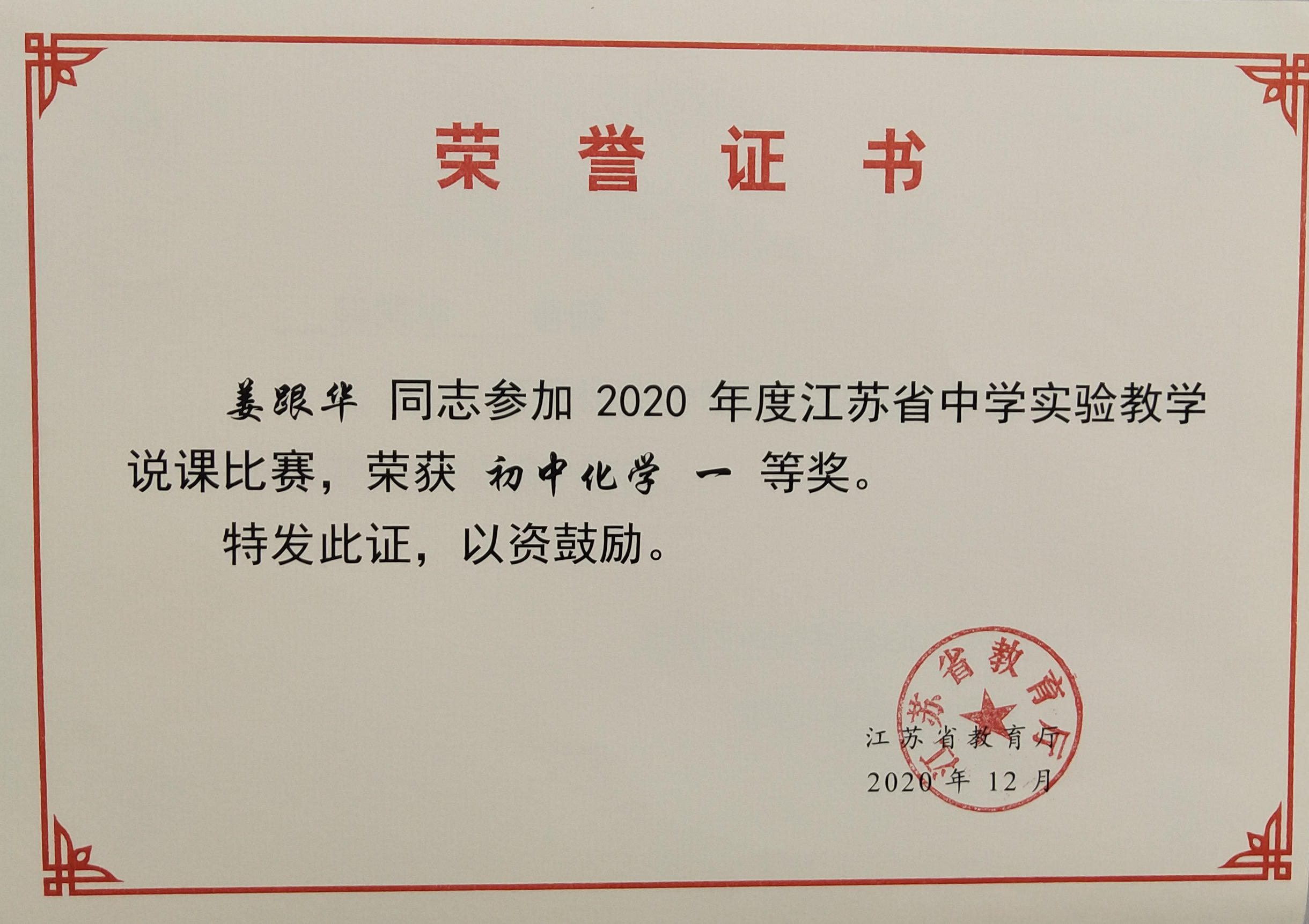 姜跟华老师江苏省实验教学说课比赛一等奖