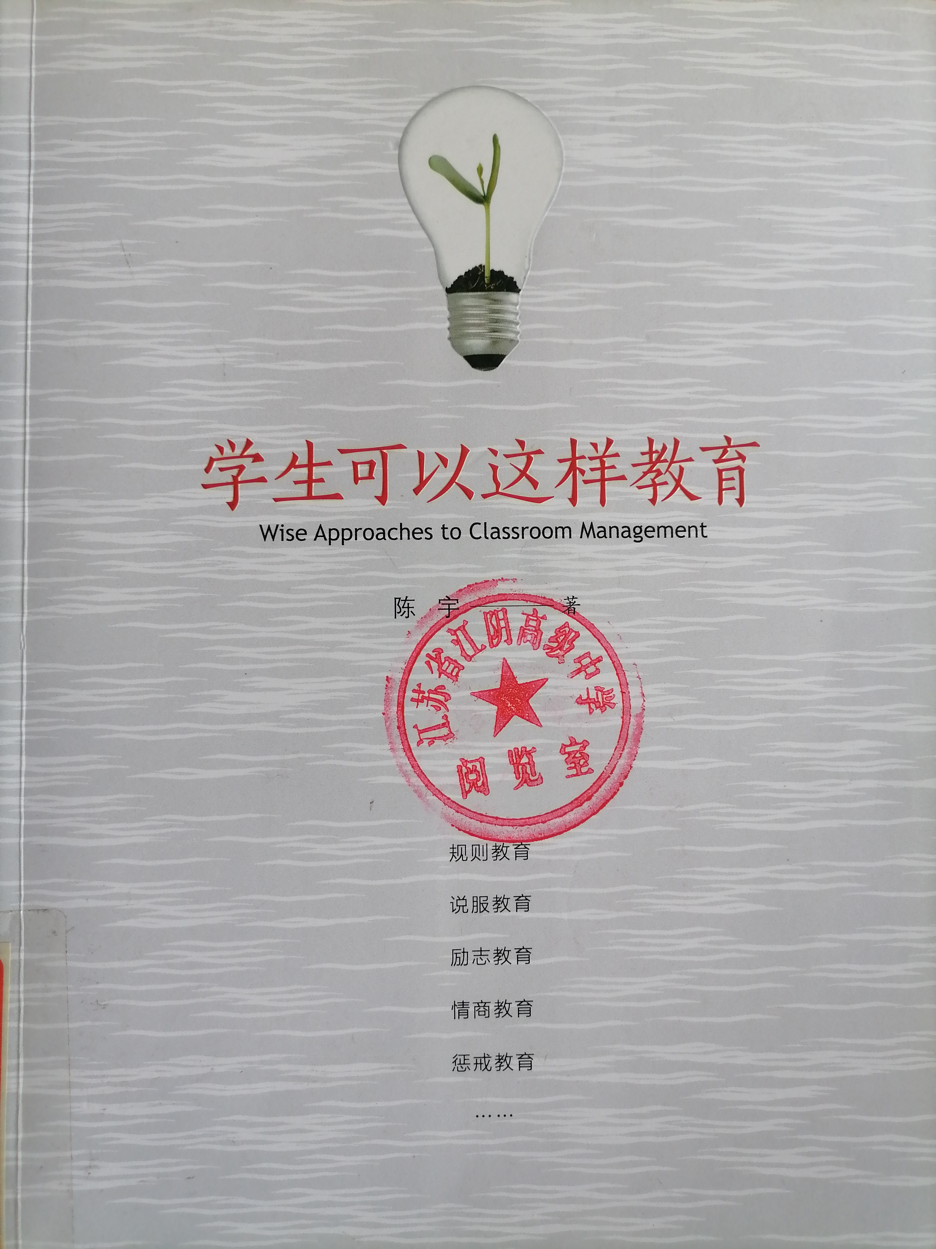 之前读了陈宇老师的《你能做最好的班主任》一书,收获颇丰,最近在工作室的推荐下,又读了陈宇老师的另外一本书《学生可以这样教育》。看了这两本书,对陈宇老师的教育理念又有了更深一步的了解。同时,也让我深刻地认识到想要做一名好班主任,不是简简单单的爱学生就可以了。班主任的一言一行,具有鲜明的示范性。叶圣陶曾经指出:“教育工作者的全部工作就是为人师表,为人师表首先必须有高尚的人格作保证。