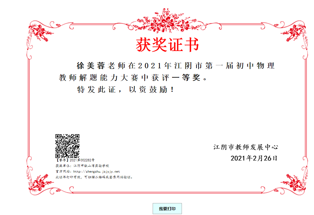 庄益君名师工作室成员徐美蓉获解题大赛一等奖