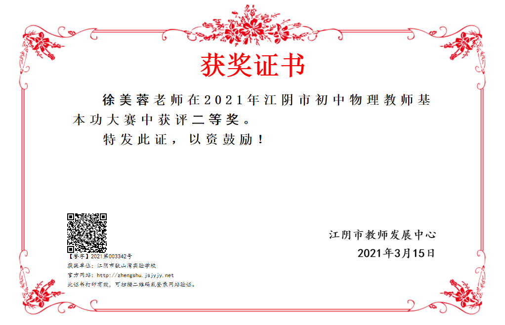 庄益君名师工作室成员徐美蓉获解题大赛一等奖