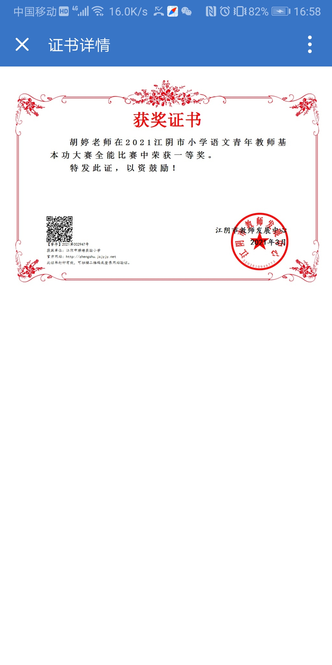 江阴市小学语文青年教师基本功大赛全能一等奖