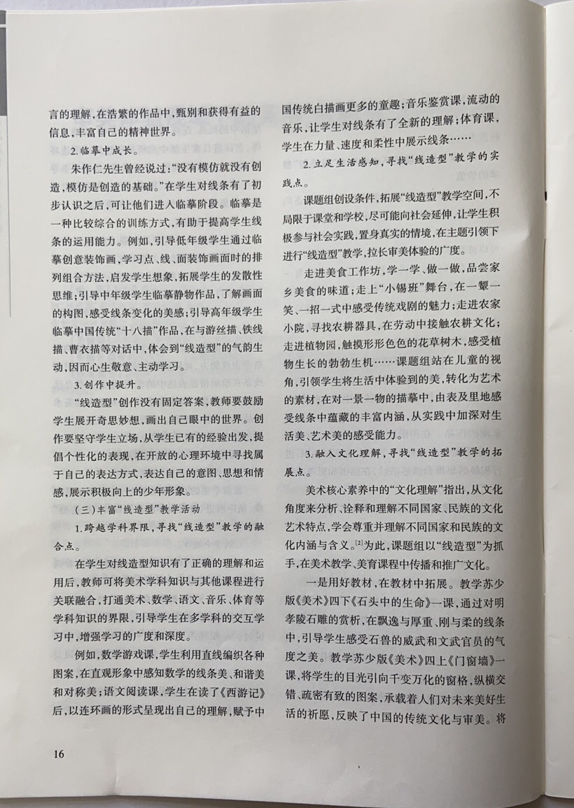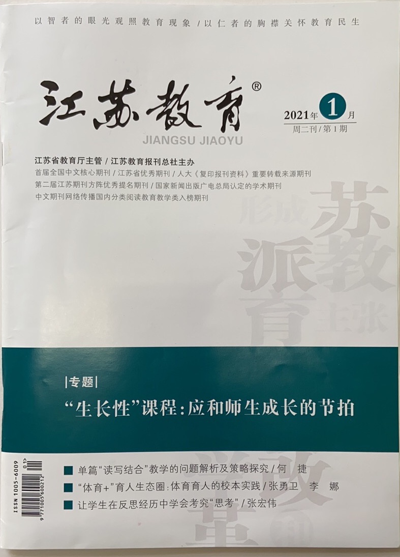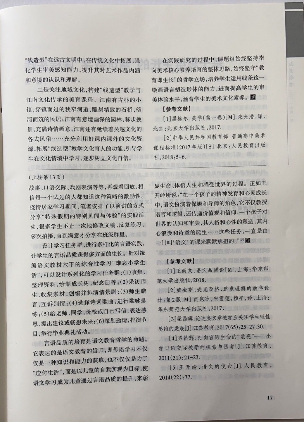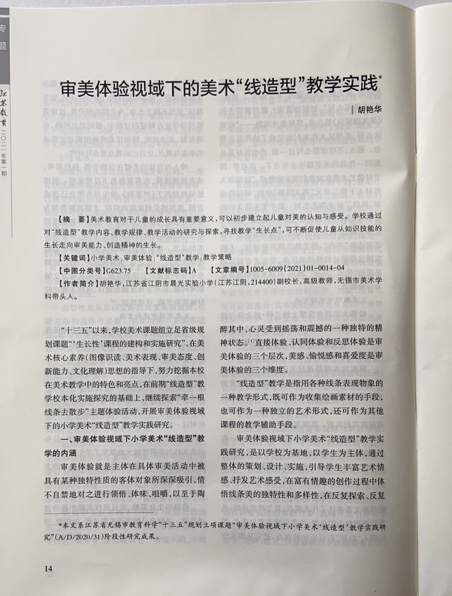 胡艳华论文《审美体验视域下的美术“线造型”教学实践》发表于《江苏教育》
