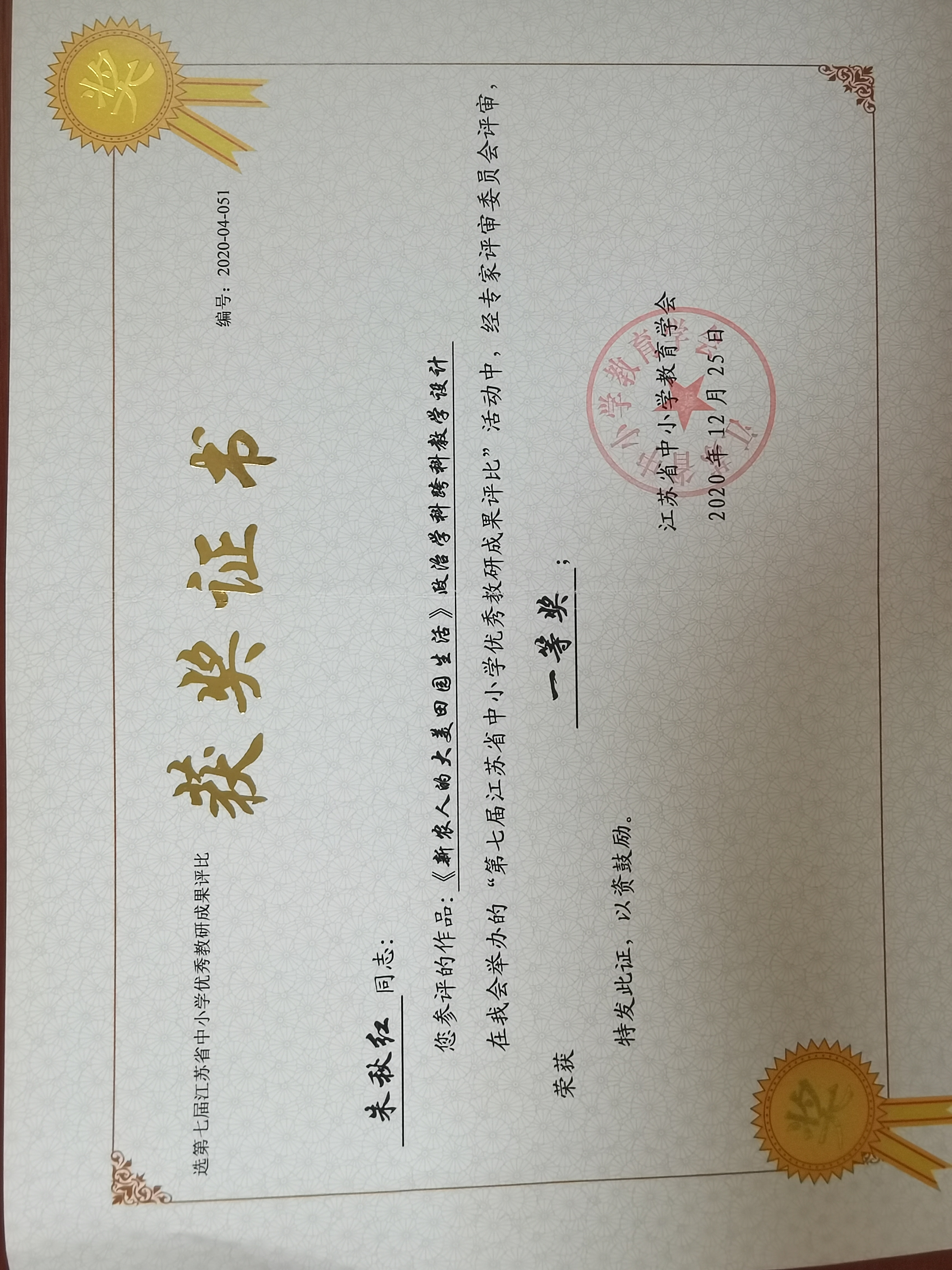 朱秋红获江苏省中小学优秀教研成果一等奖