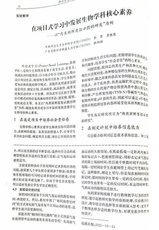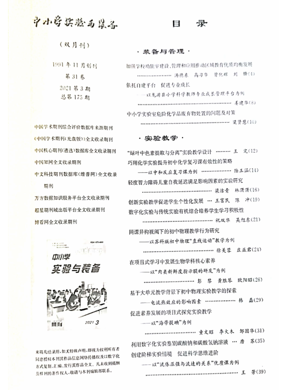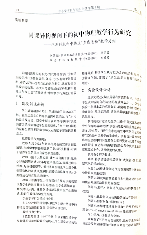 庄益君工作室成员徐美蓉发表论文《同课异构视阈下的初中物理教学行为研究》