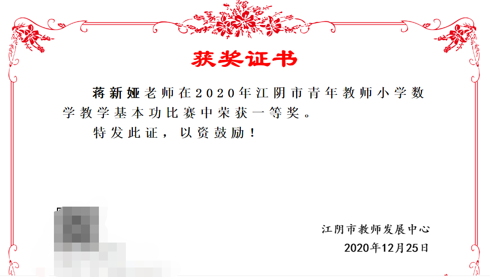 无锡市全顺名师工作室成员蒋新娅获江阴市青年教师小学教学基本功比赛一等奖