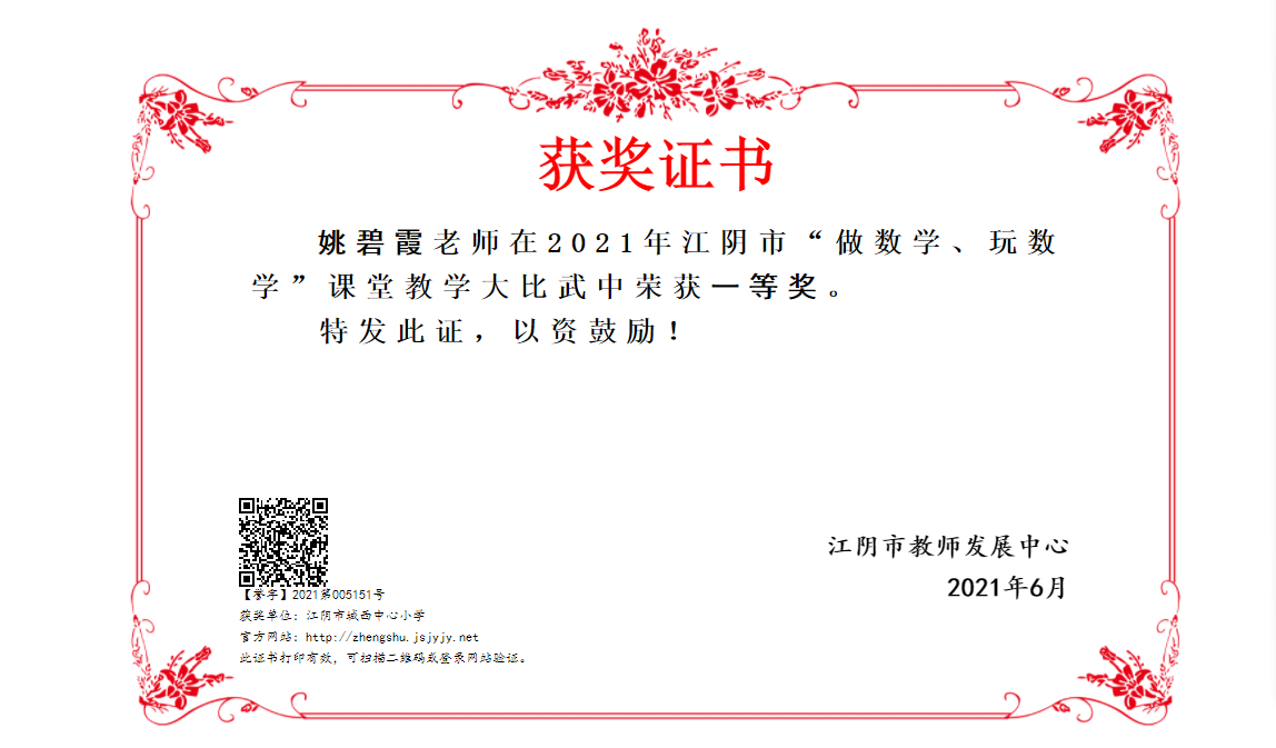 江阴市“做数学、玩数学”课堂教学大比武一等奖