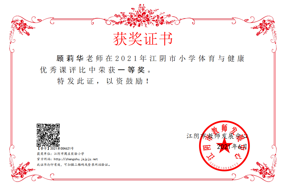 沈菁名师工作室成员——顾莉华获江阴市小学体育与健康优秀课评比一等奖