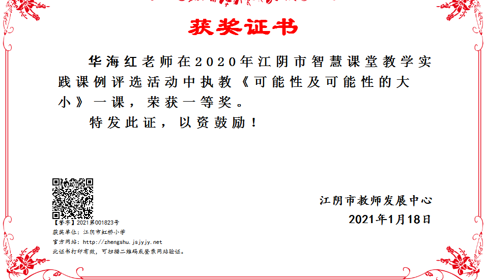 匡金龙名师工作室成员华海红老师在江阴市智慧课堂教学实践课例评比中获江阴市一等奖