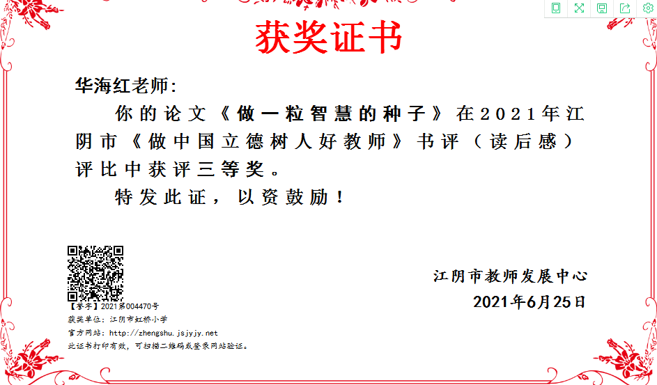 匡金龙名师工作室成员华海红老师的读后感获江阴市三等奖