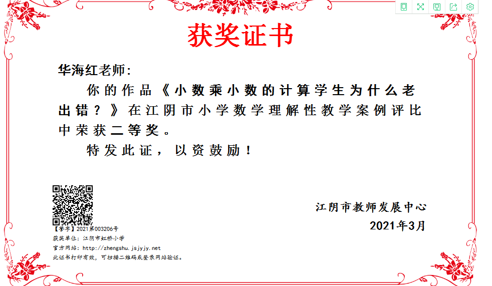 匡金龙名师工作室成员华海红老师在江阴市小学数学理解性教学案例评比中获江阴市二等奖