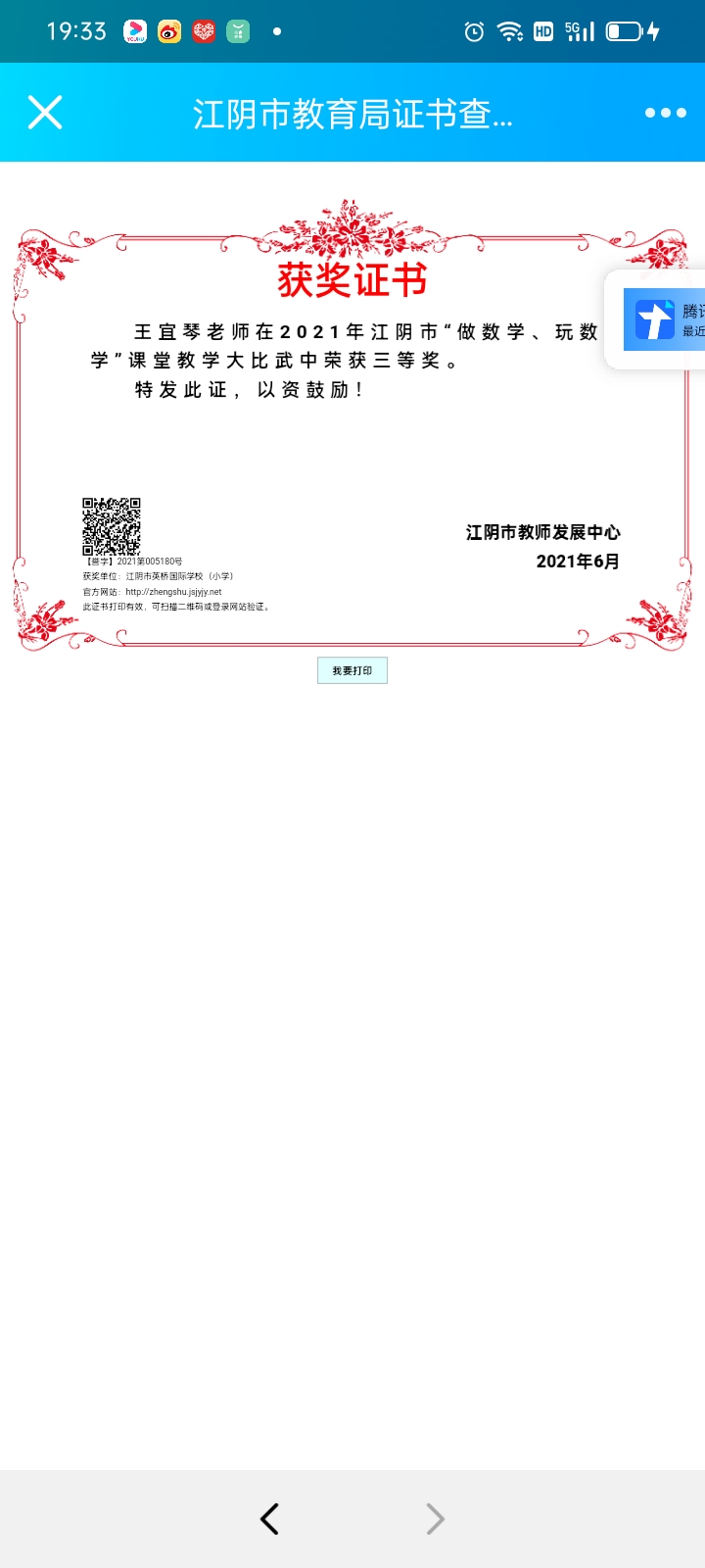 匡金龙名师工作室成员王宜琴中年教师大比武江阴市三等奖