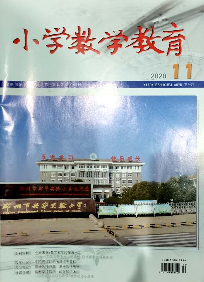 包静娟数学理解名师工作室成员钱丽老师的论文发表在《小学数学教育》杂志2020.11