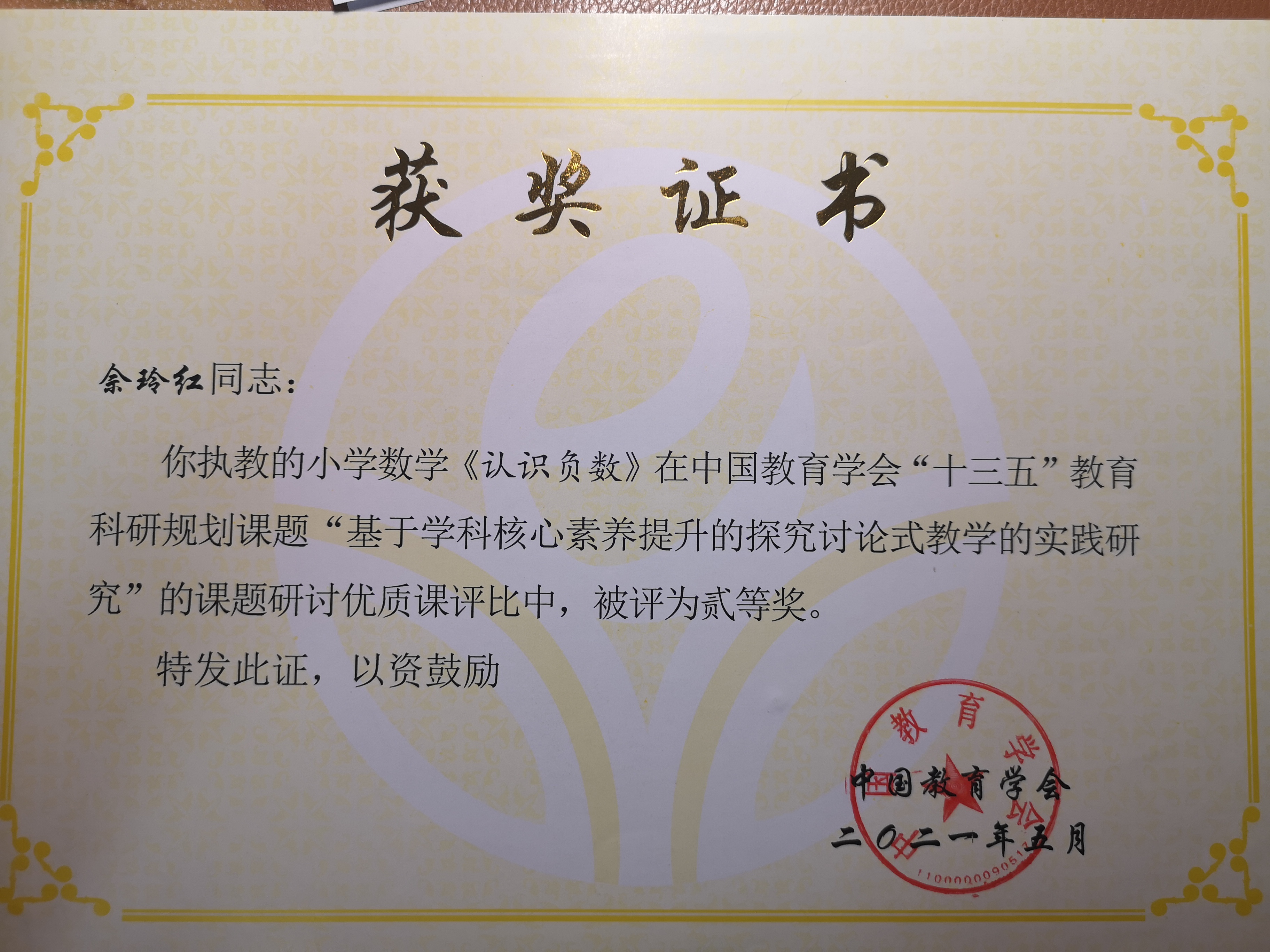 包静娟数学理解工作室成员佘玲红老师在“十三五”教育科研规划课题优质课评选中获得二等奖(国家级)