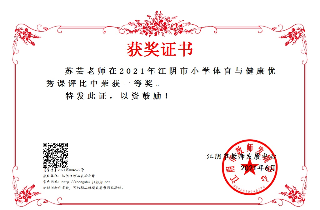 徐卓伟老师荣获江阴市初中物理实验技能大赛一等奖