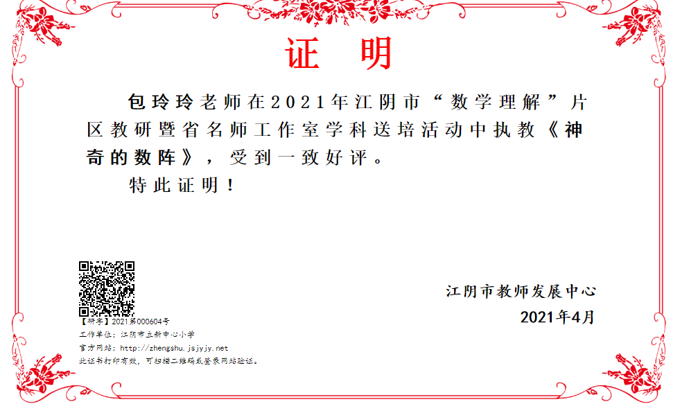 包静娟数学理解工作室成员黄芬老师在2021年江阴市小学数学全员培训活动中上展示课《长正方形的认识》