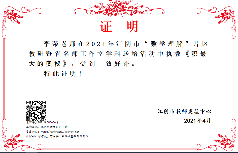 包静娟数学理解工作室成员黄芬老师在2021年江阴市小学数学全员培训活动中上展示课《长正方形的认识》