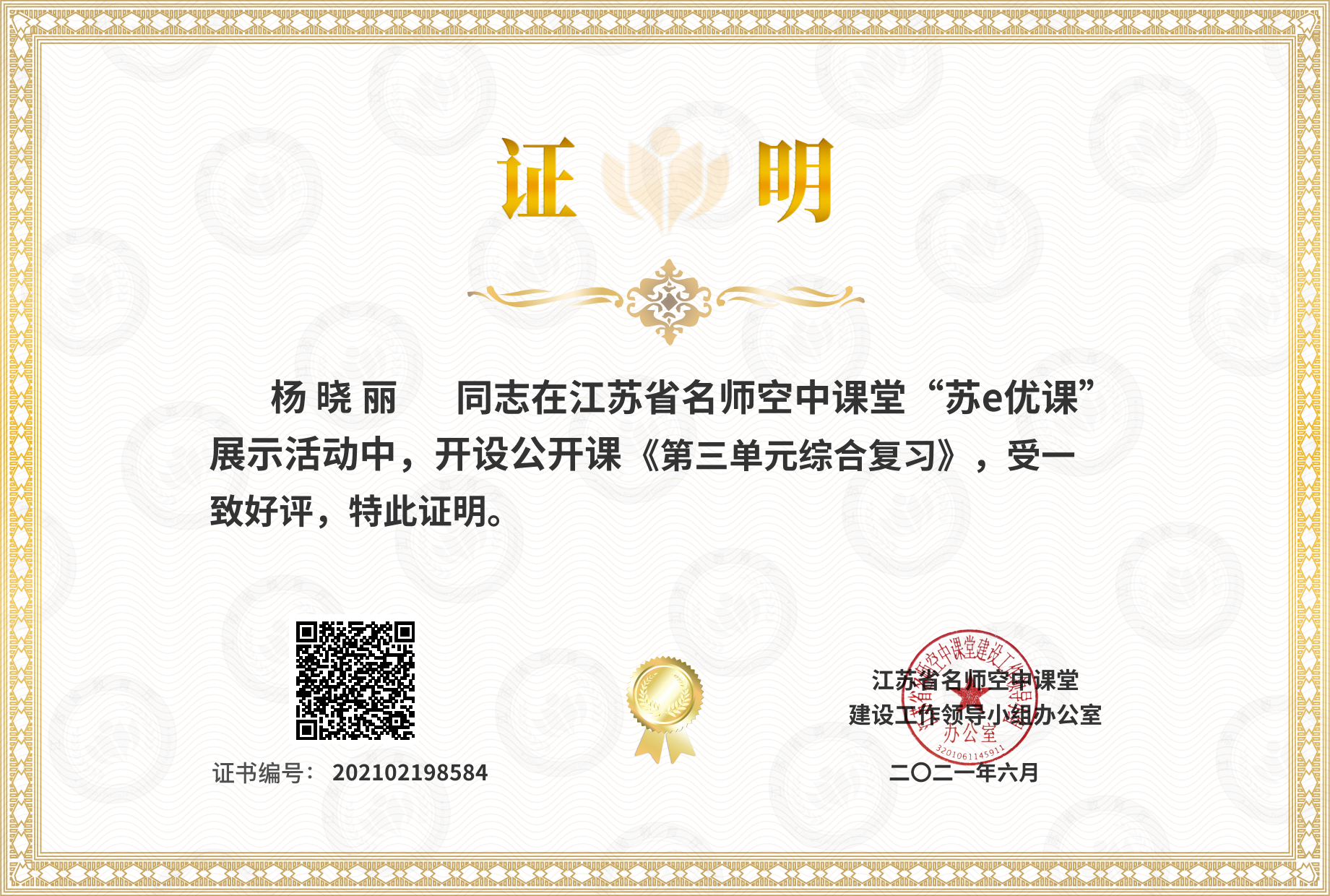 杨晓丽公开课《第三单元综合复习》获“苏e优课”