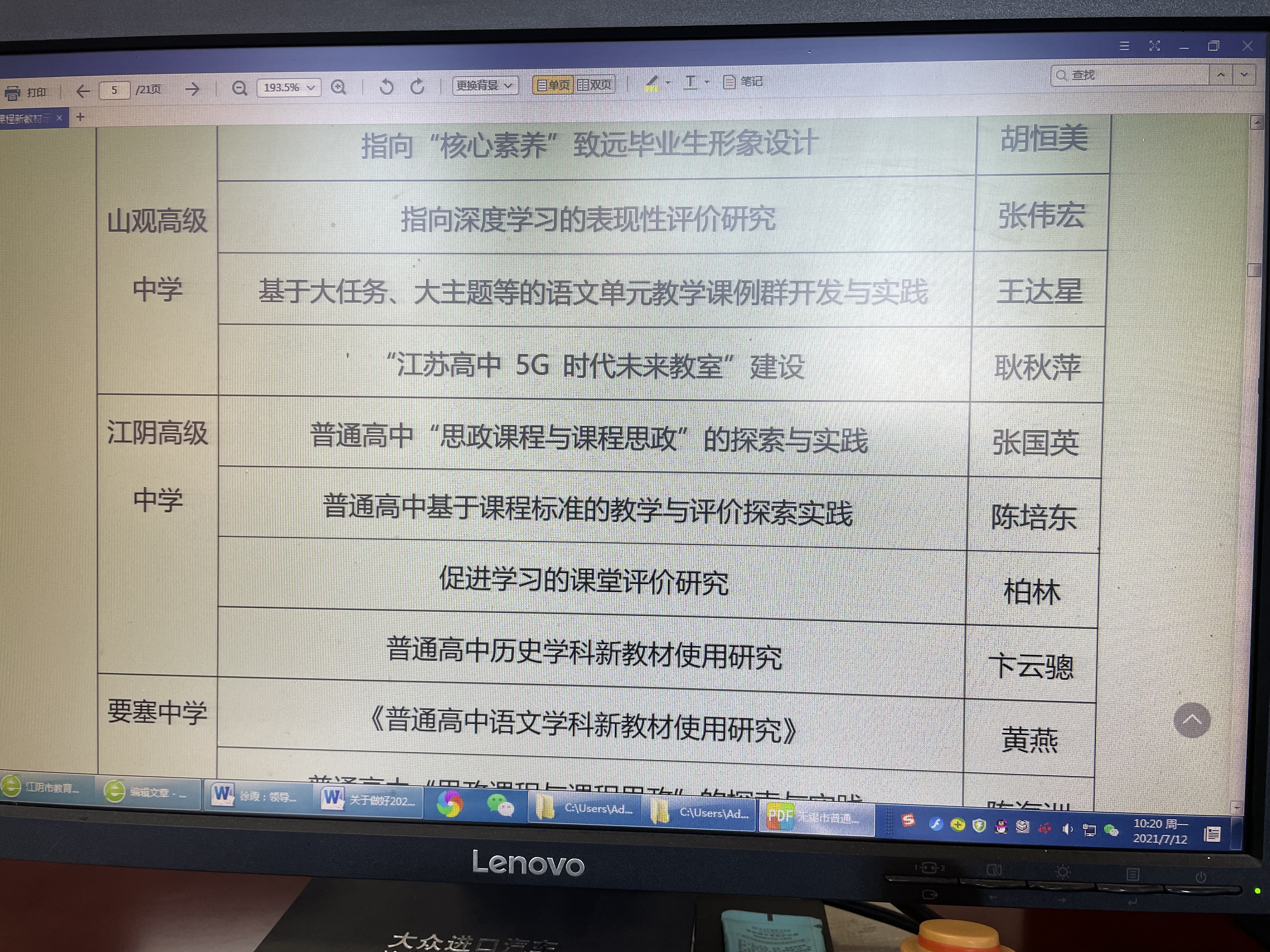 江阴高中张国英领衔项目——“普通高中思政课程和课程思政实践探索”成为示范区实验项目,参与了2021年7月5日到7日的培训 技术支持:江苏迅和信息科技有限公司