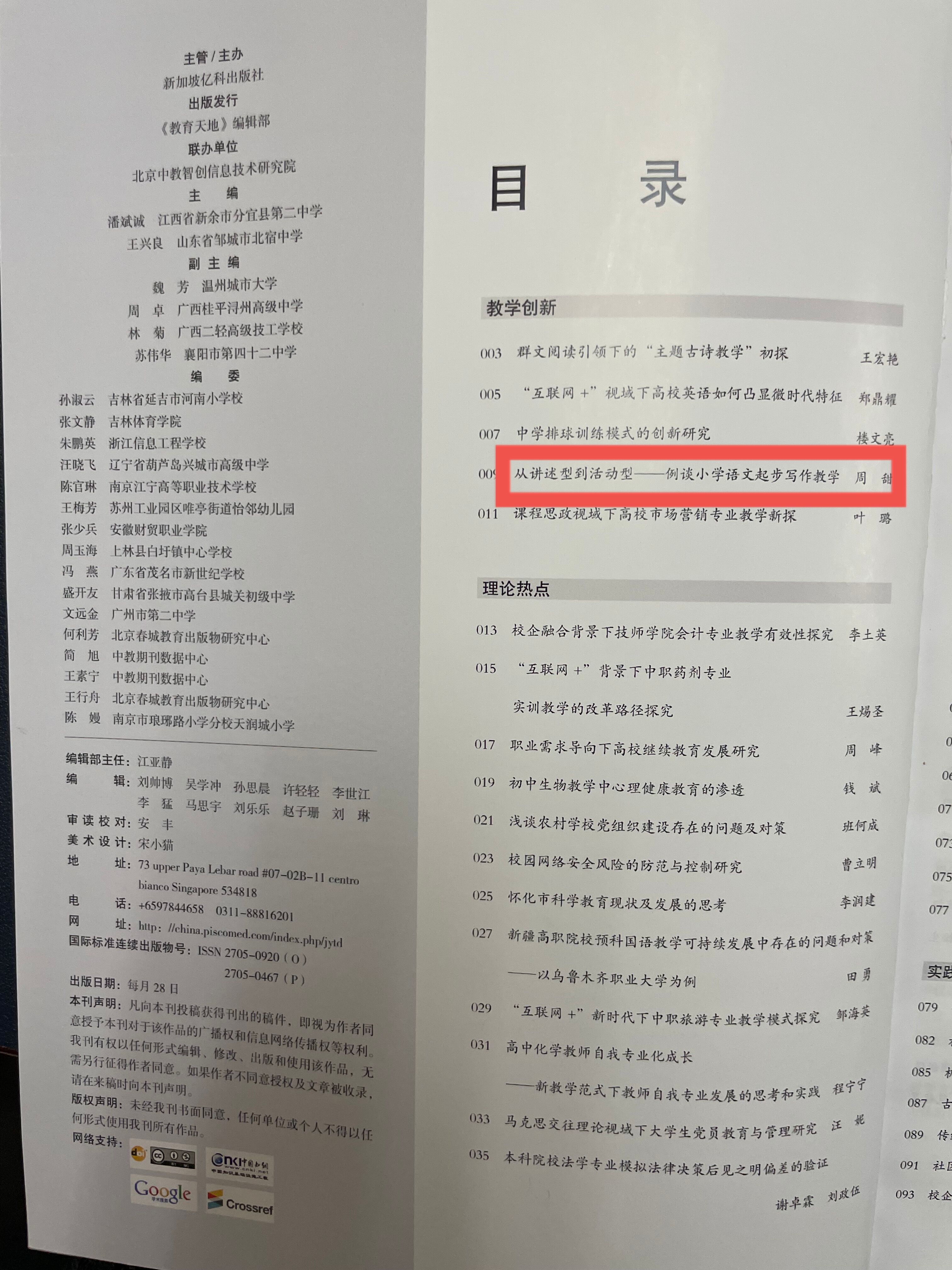 《从讲述型到活动型——例谈小学语文起步写作教学》发表于《教育天地》