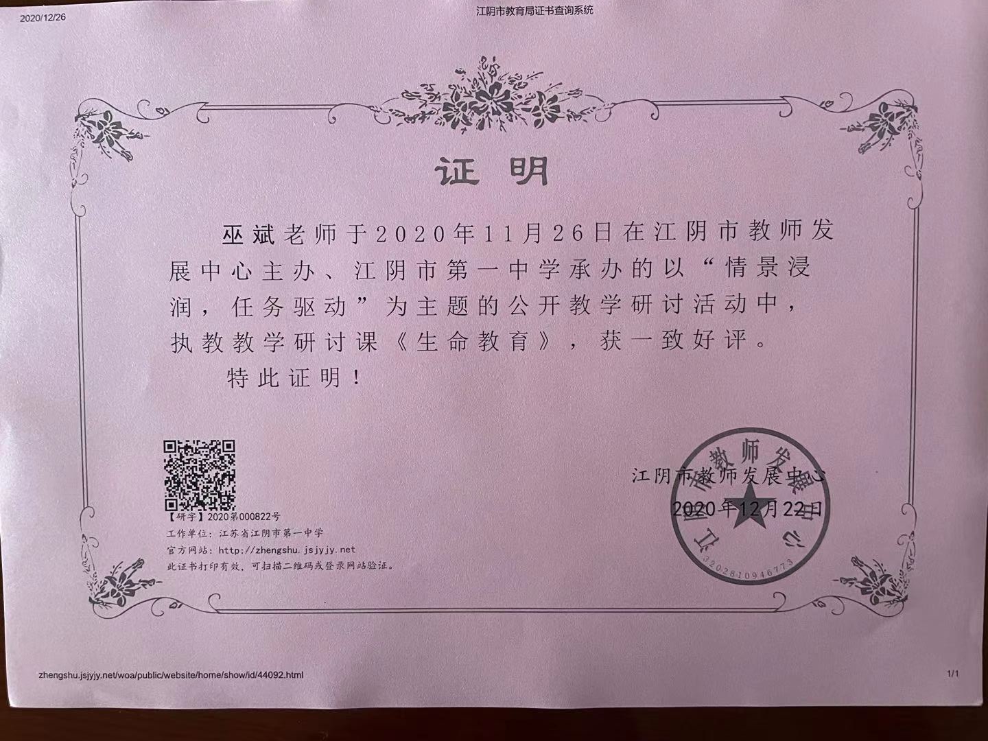 巫斌 江阴市公开研讨课《生命教育》