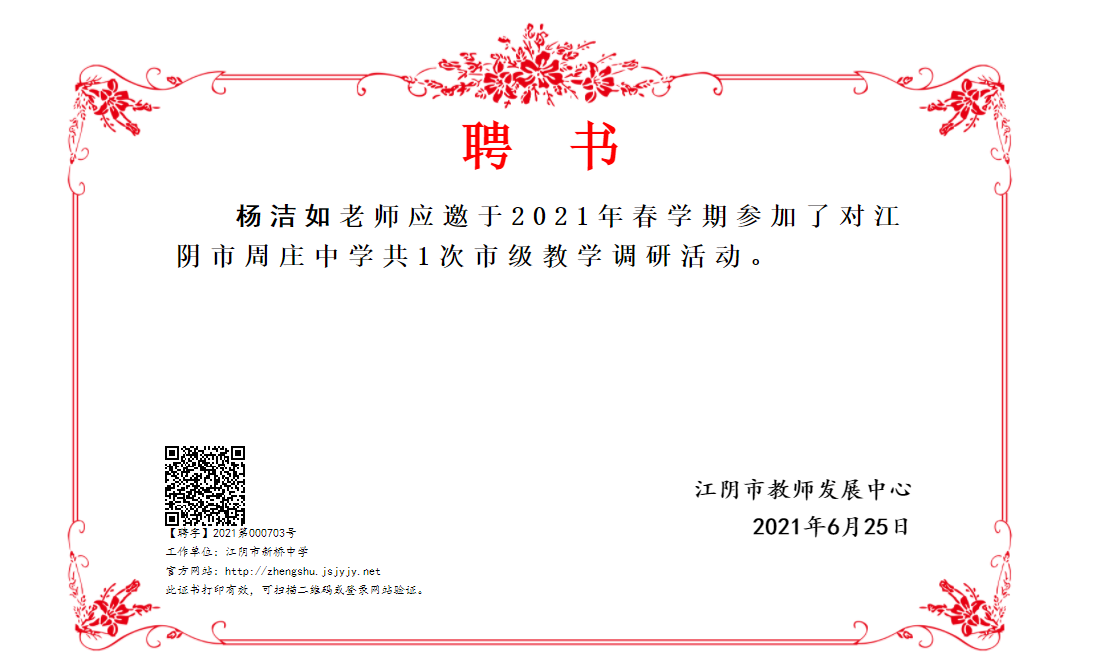 庄益君名师工作室成员杨洁如老师参加教学调研活动