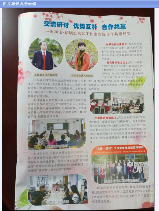 两工作室间的跨界合作,理念思路圆融互摄、成员发展共生共长。《江苏教育》2016年7期,《中学政治教学参考》2017年3期刊发了各自工作室建设成果。