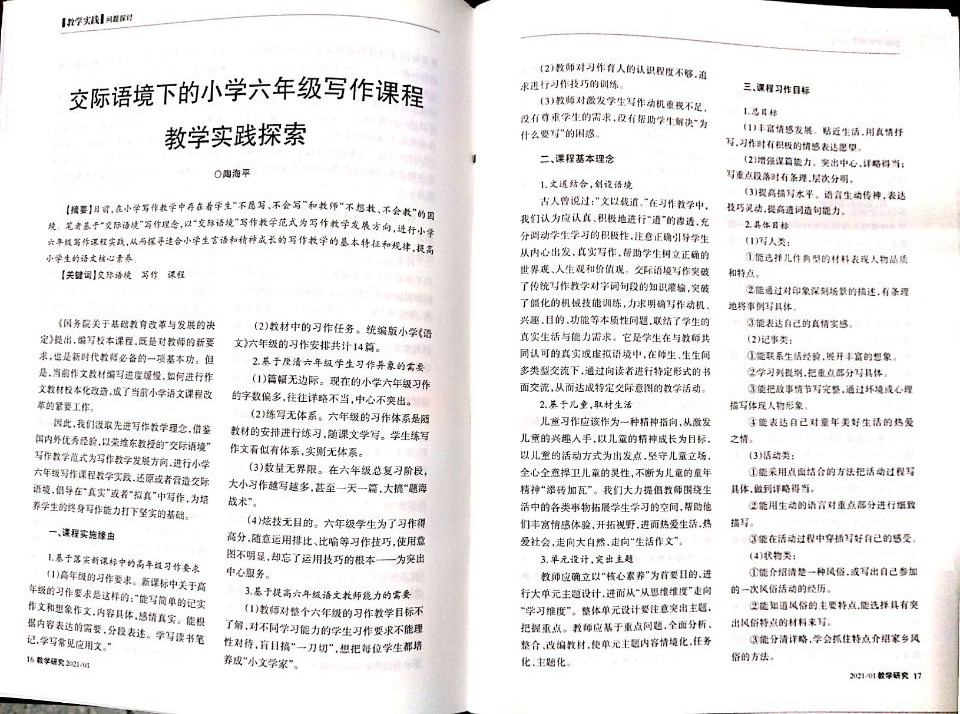 学员陶海平论文发表省级刊物《阅读之教学研究》202101