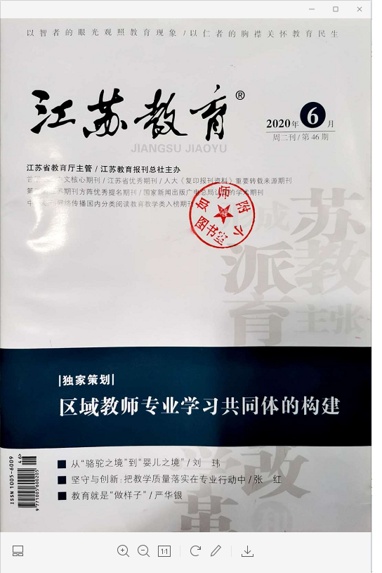 毛新薇撰写的《力行陪伴教师成长》发表于《江苏教育》(教师发展版)2020年第6期
