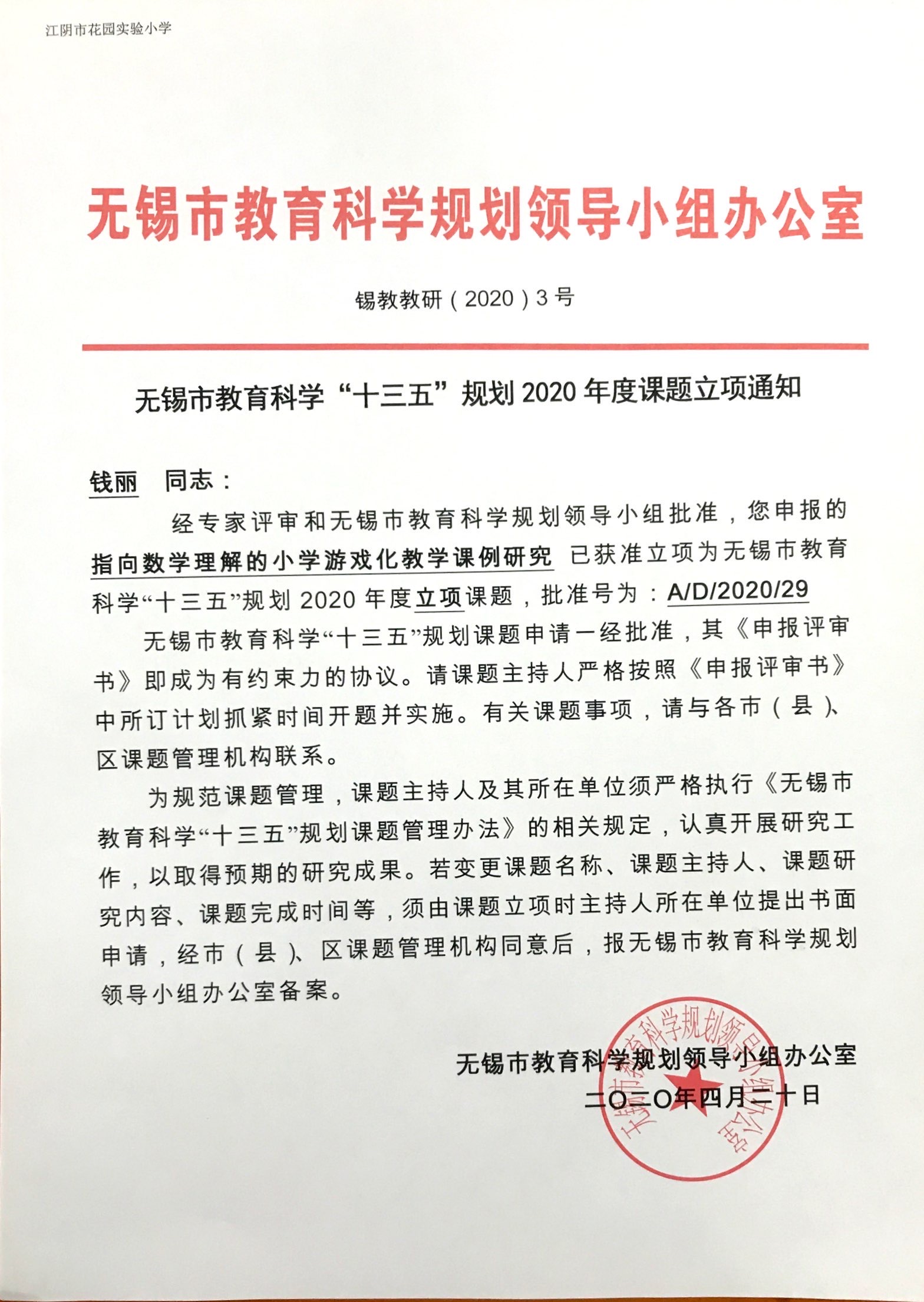无锡市徐顺湘名师工作室成员钱丽无锡市课题在研