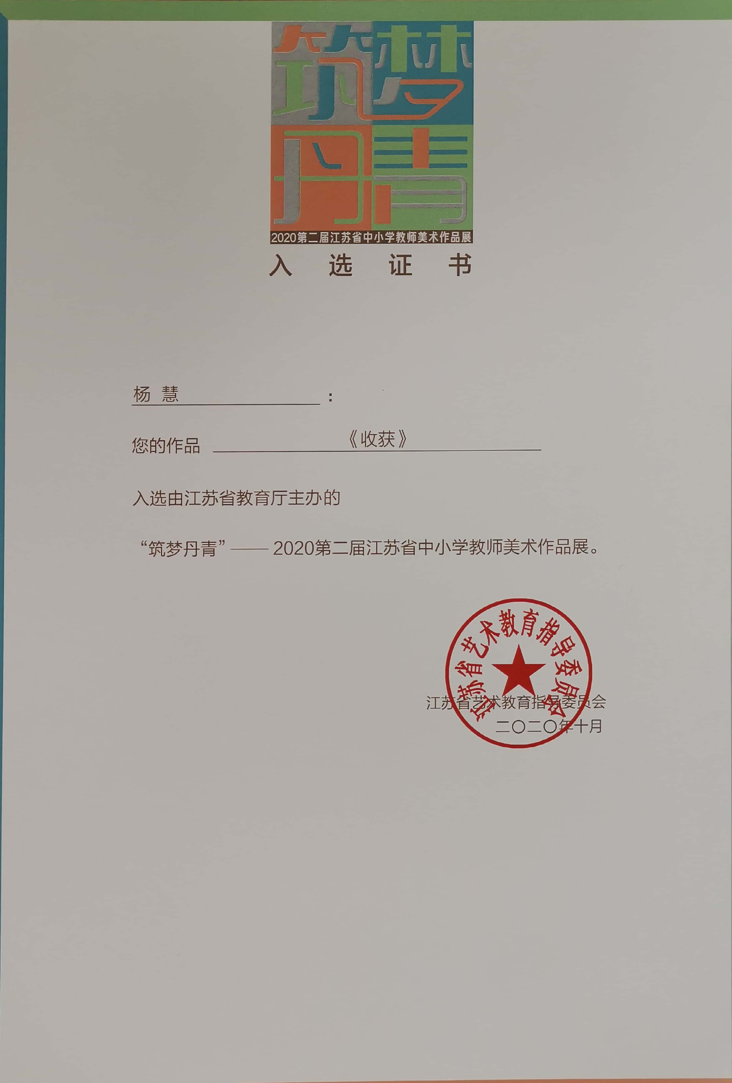 绘画作品入选江苏省教育厅主办的小学美术教师作品展