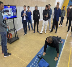 本次活动最吸引人的莫过于“体测屏”与“体锻屏”这两个智慧屏。在工程师介绍过使用方法后,各位老师迫不及待的要亲自体验一把,围绕着“两屏”尝试、摸索、研究、探讨。特别是在“体测屏”前,老师们做出各种学生容易出现的错误动作,挑战仪器的“识别能力”,并根据视频回放、动作分析等内容赞叹着仪器的“高智商”。