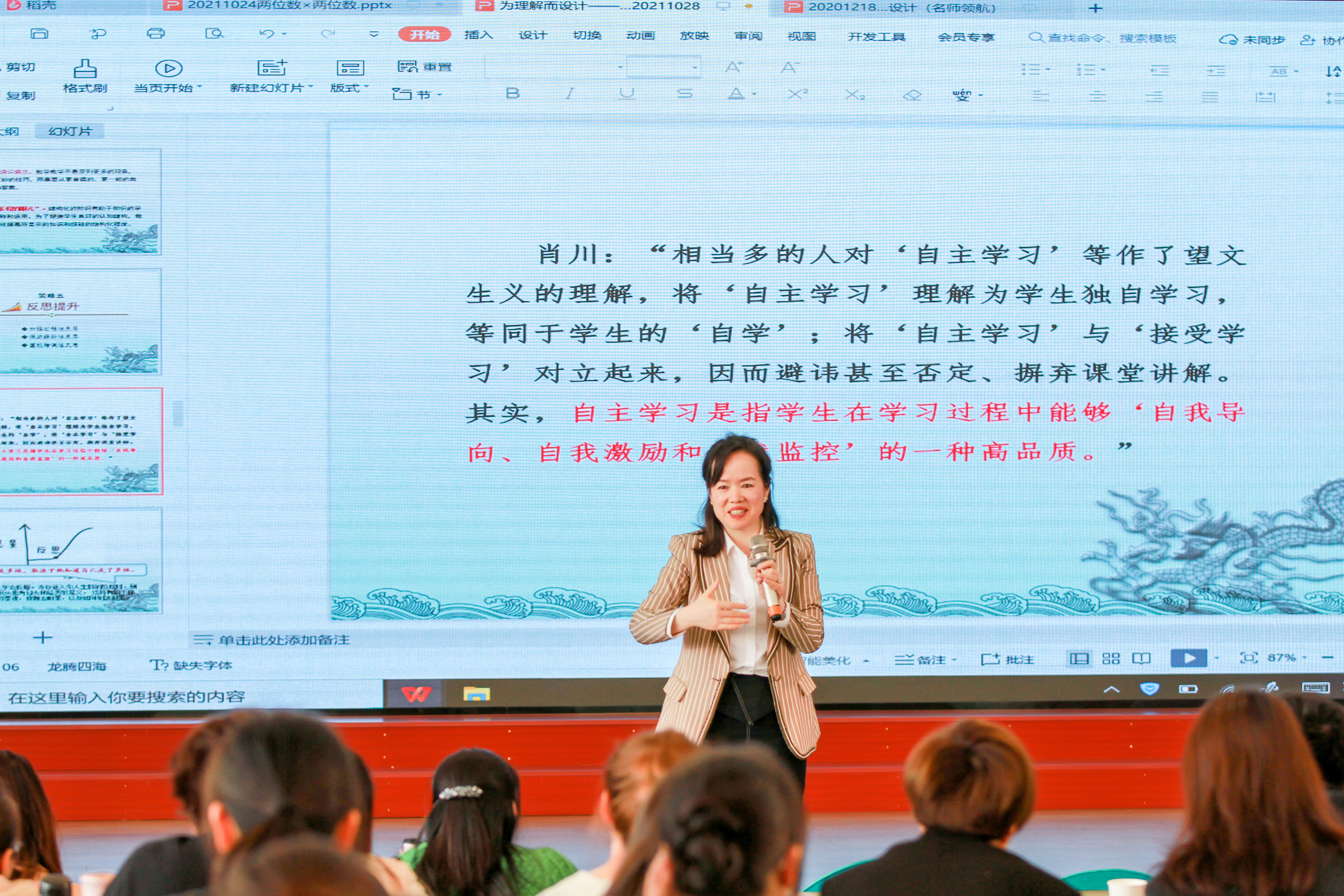 包静娟导师在省小学数学名师工作室集中研修活动中做讲座《为理解而设计——数的运算》